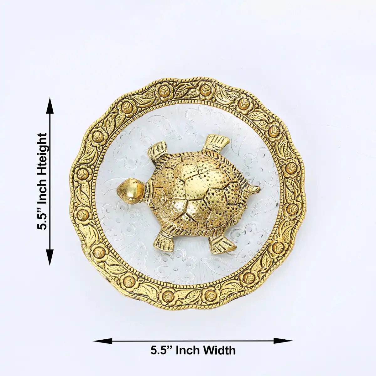 Metal Tortoise Statue With Glass Plate - 1 x 5 Inches | Gold Antique Polish Tortoise Idol With Plate for Home