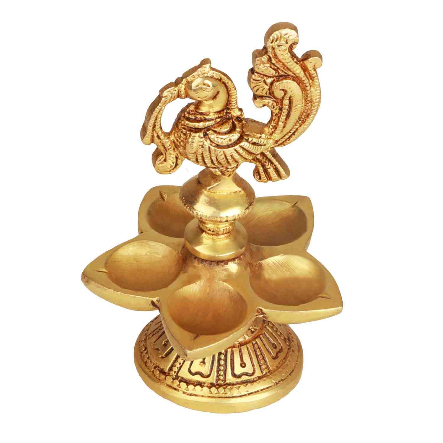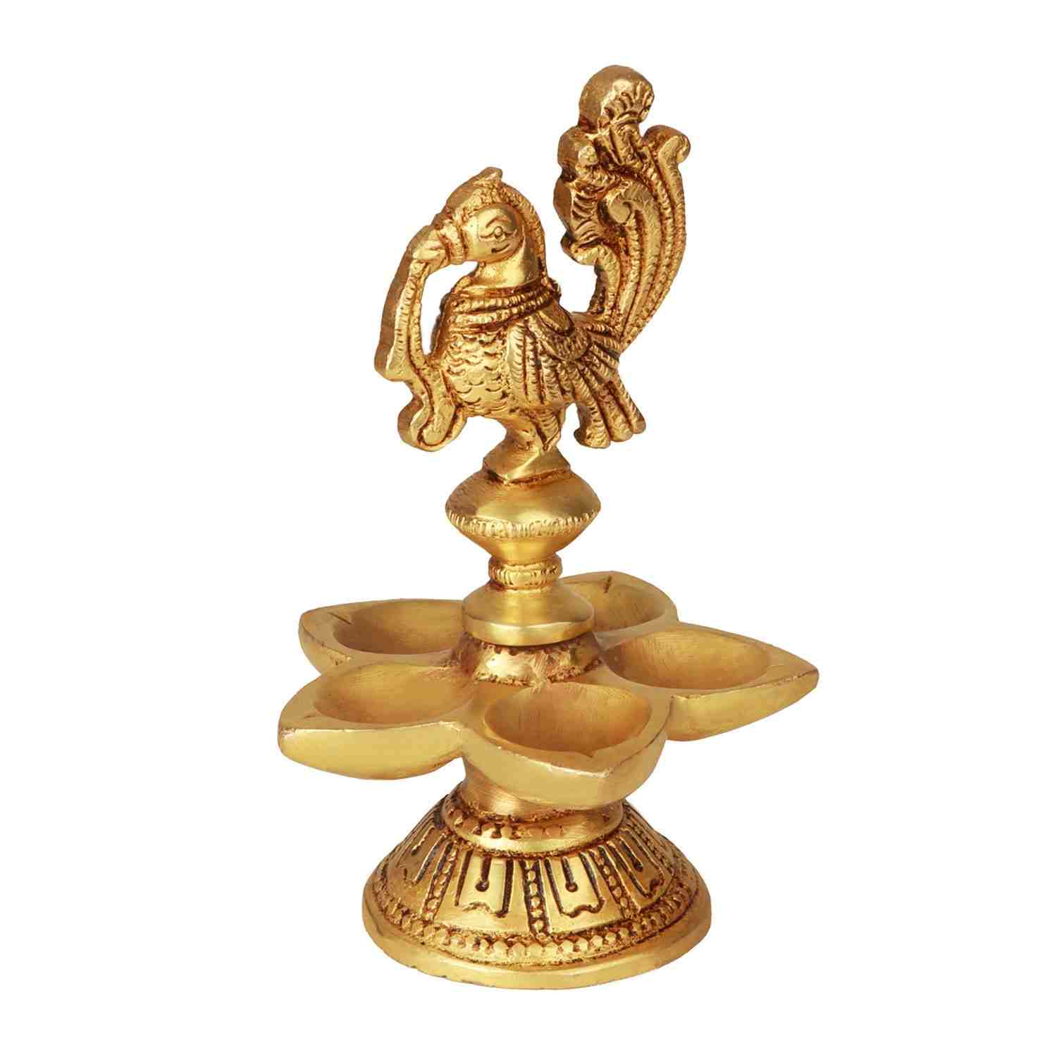 Moor With Five Deep - 5.5 Inches | Brass Vilakku/ Antique Finish Lamp/ Diya for Pooja/ 595 Gms Approx