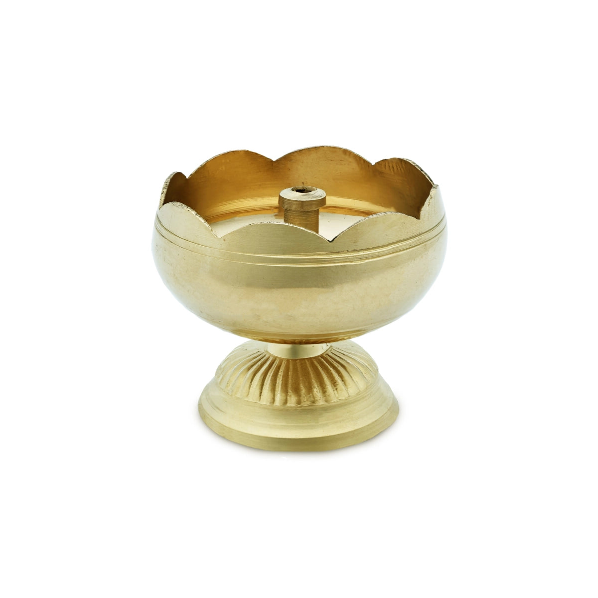Nanda Deepam With Base - 2.5 x 2.5 Inches | Brass Lamp/ Tomato Shape Nandha Vilakku for Pooja