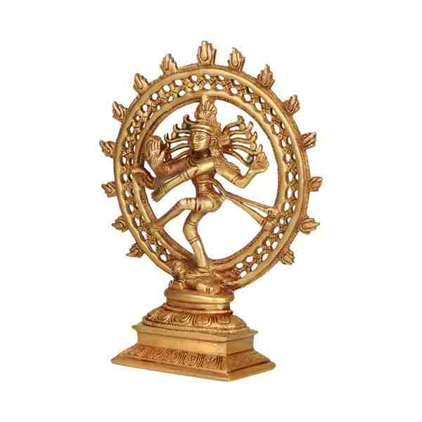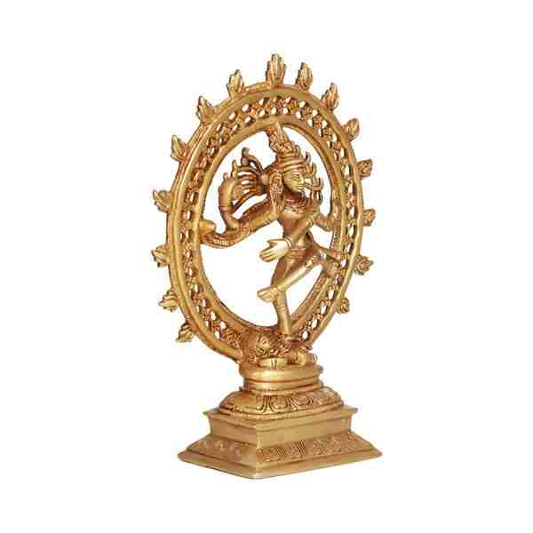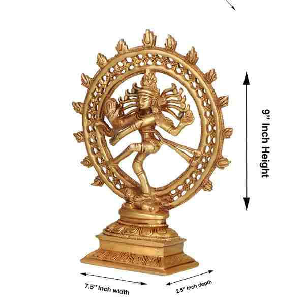 Natraj Double Frame - 9 x 7.5 Inches | Antique Brass Statue/ Nataraj Murti/ Natraja Statue for Pooja
