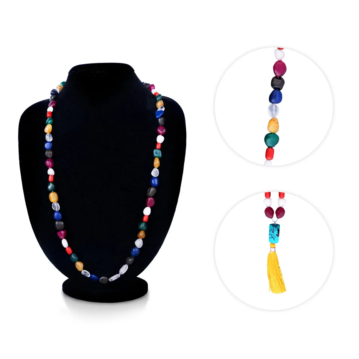 Navaratna Mala With Thread Knot - 15 Inches | Navratna Jewelry/ Navratan Mala For Auspicious Wear