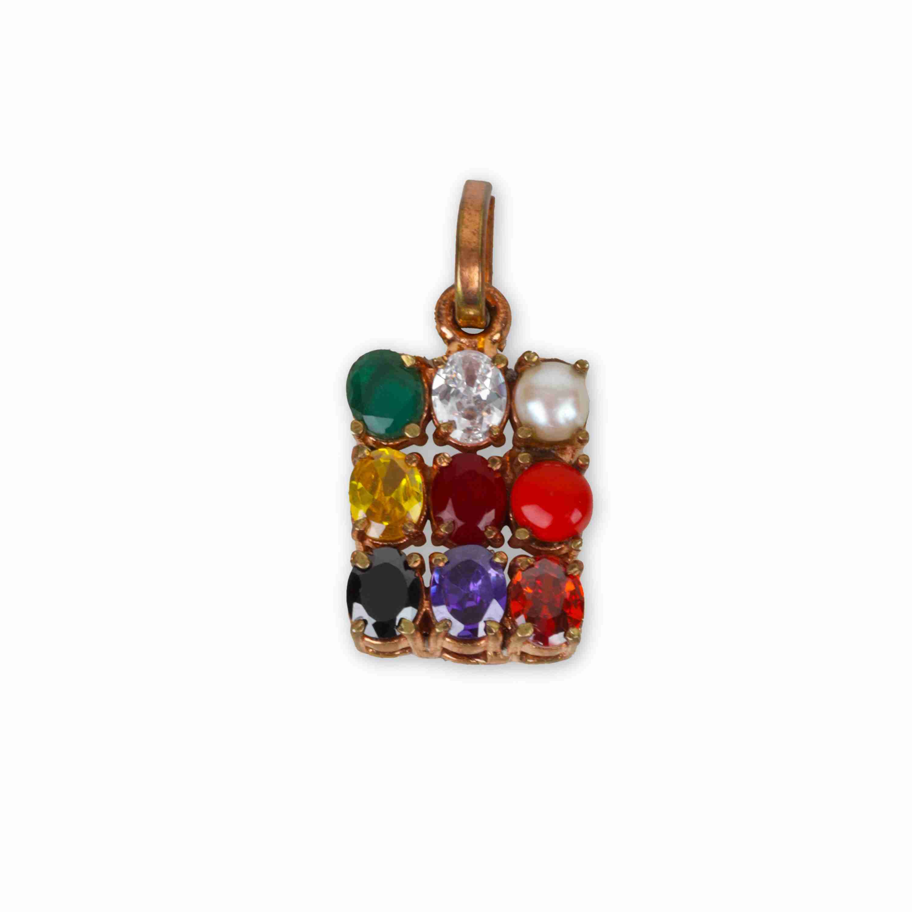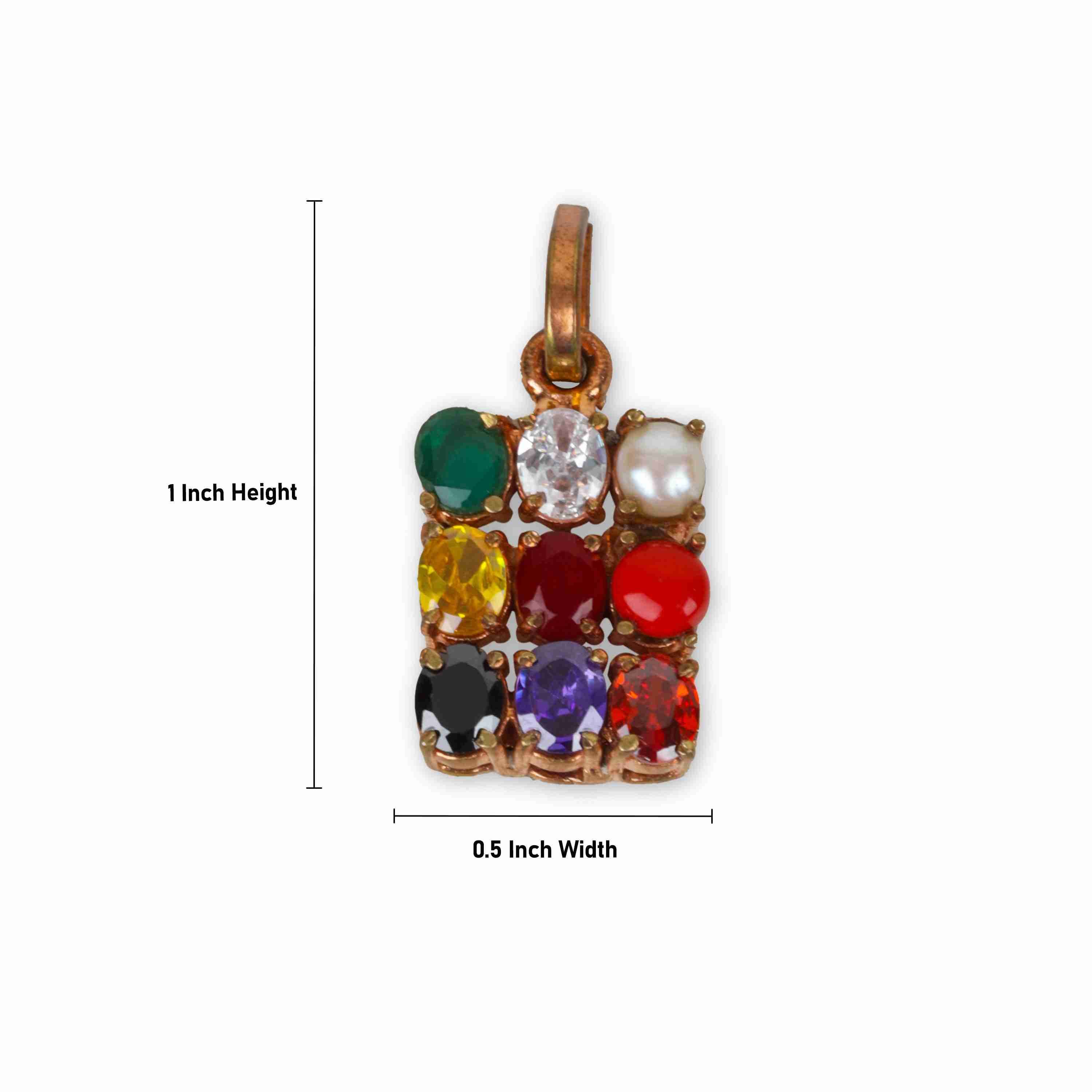 Navaratna Pendant - 1 x 0.5 Inch | Navratna Locket/ Navaratna Stones Dollar for Men and Women