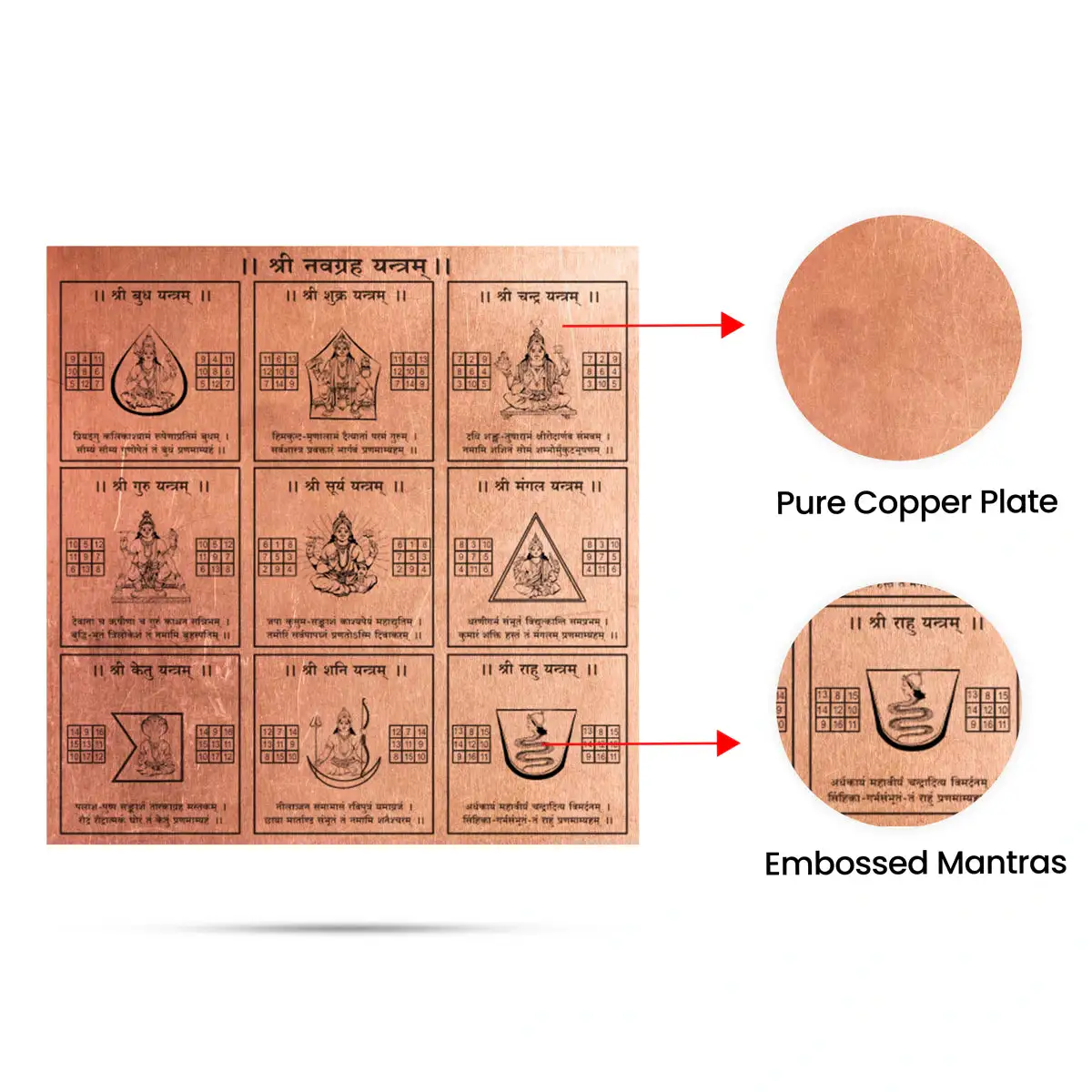 Navgrah Yantra - 3 x 3 Inches | Navgraha Yantra/ Copper Yantra for Pooja