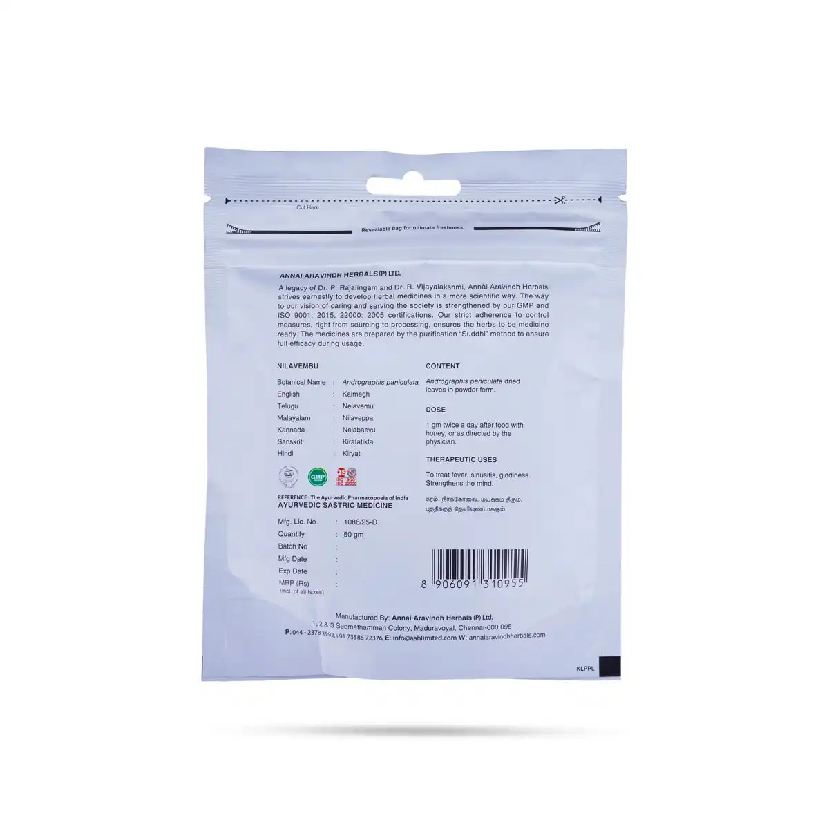 Nilavembu Powder - 50 Gms | Nilavembu Kashayam Powder Zip Pouch/ Nilavembu Podi/ Kiratatikta