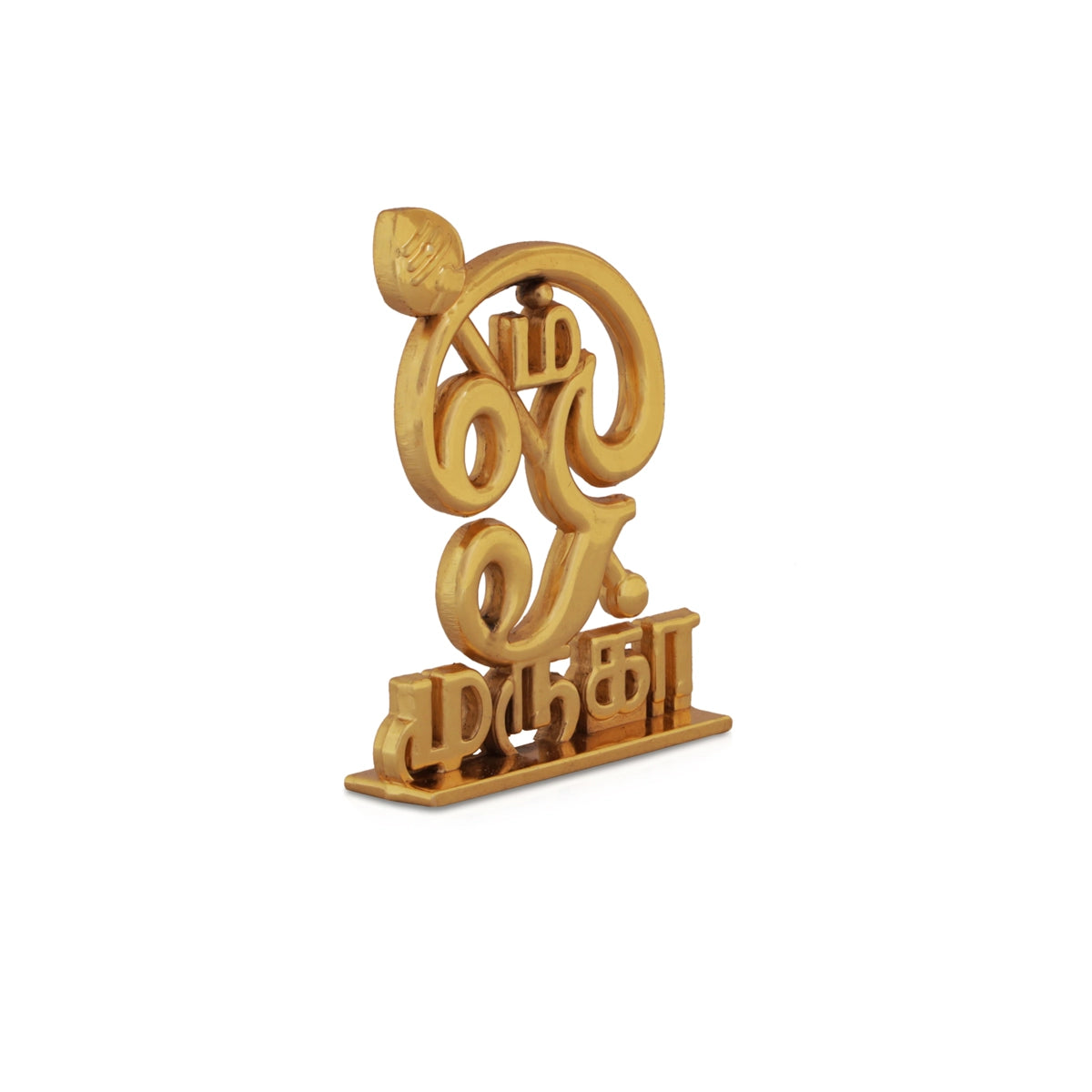 Om Statue - 3 x 2 Inches | Aluminium Tamil Om Stand/ Gold Polish Om Idol for Car Dashboard