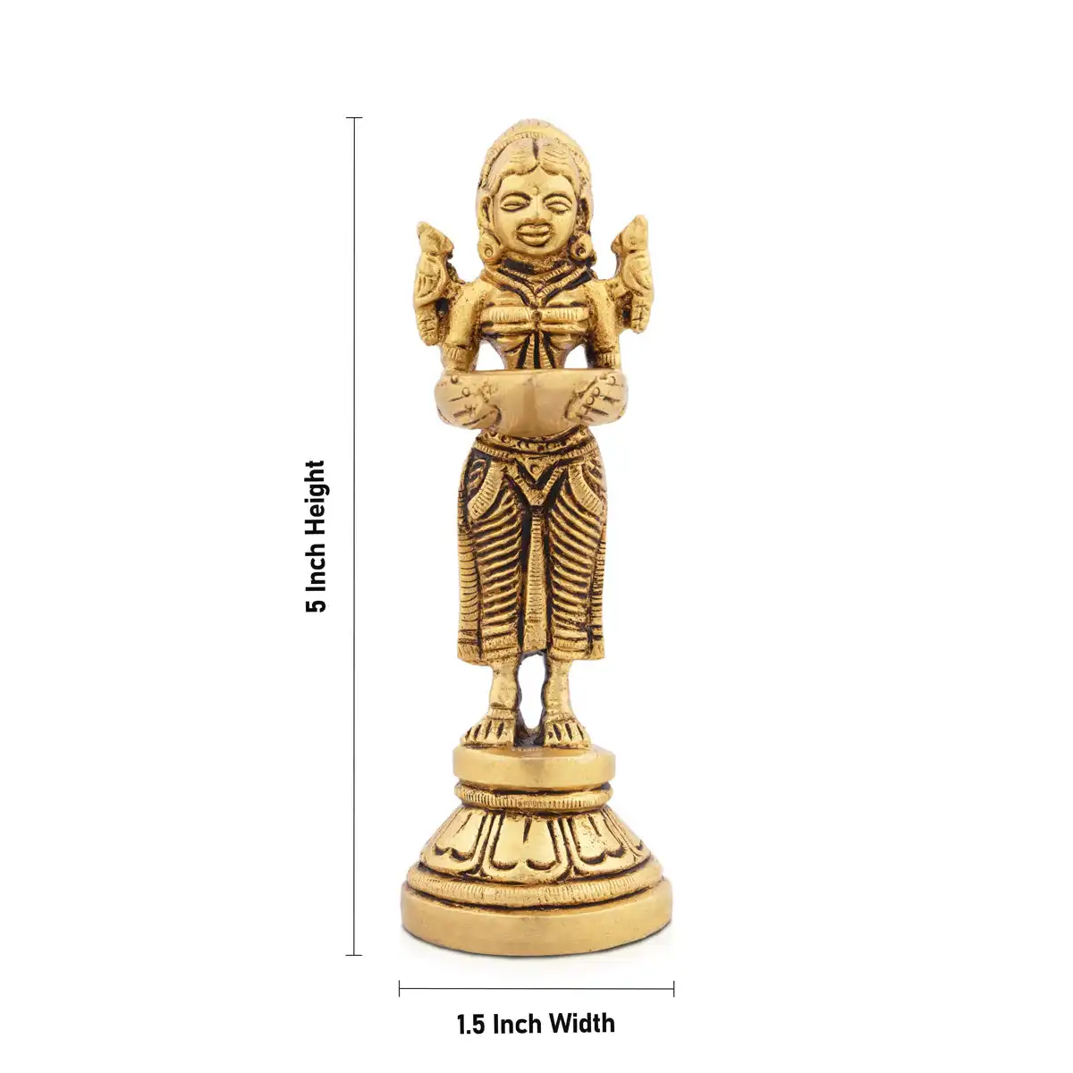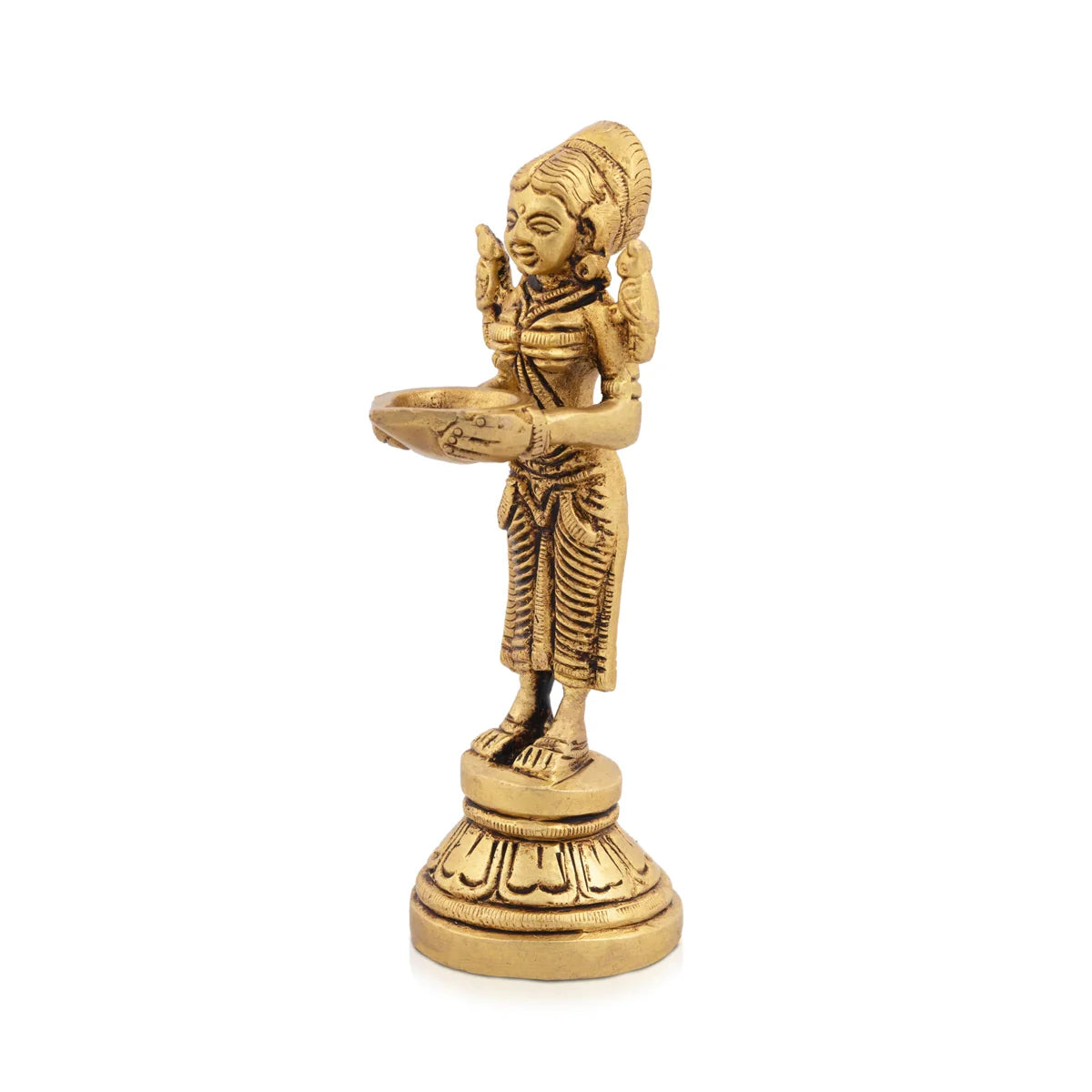 Paavai Vilakku - 5 x 1.5 Inches | Antique Brass Welcome Lady with Deep/ Pavai Lamp for Pooja/ 460 Gms Approx