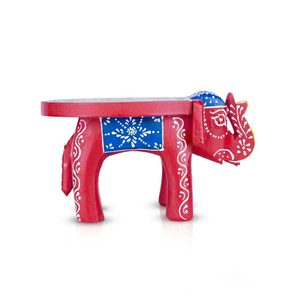 Painted Elephant Stool - 4 x 7.5 Inches | Wooden Stool/ Decorative Stool for Living Room/ 295 Gms