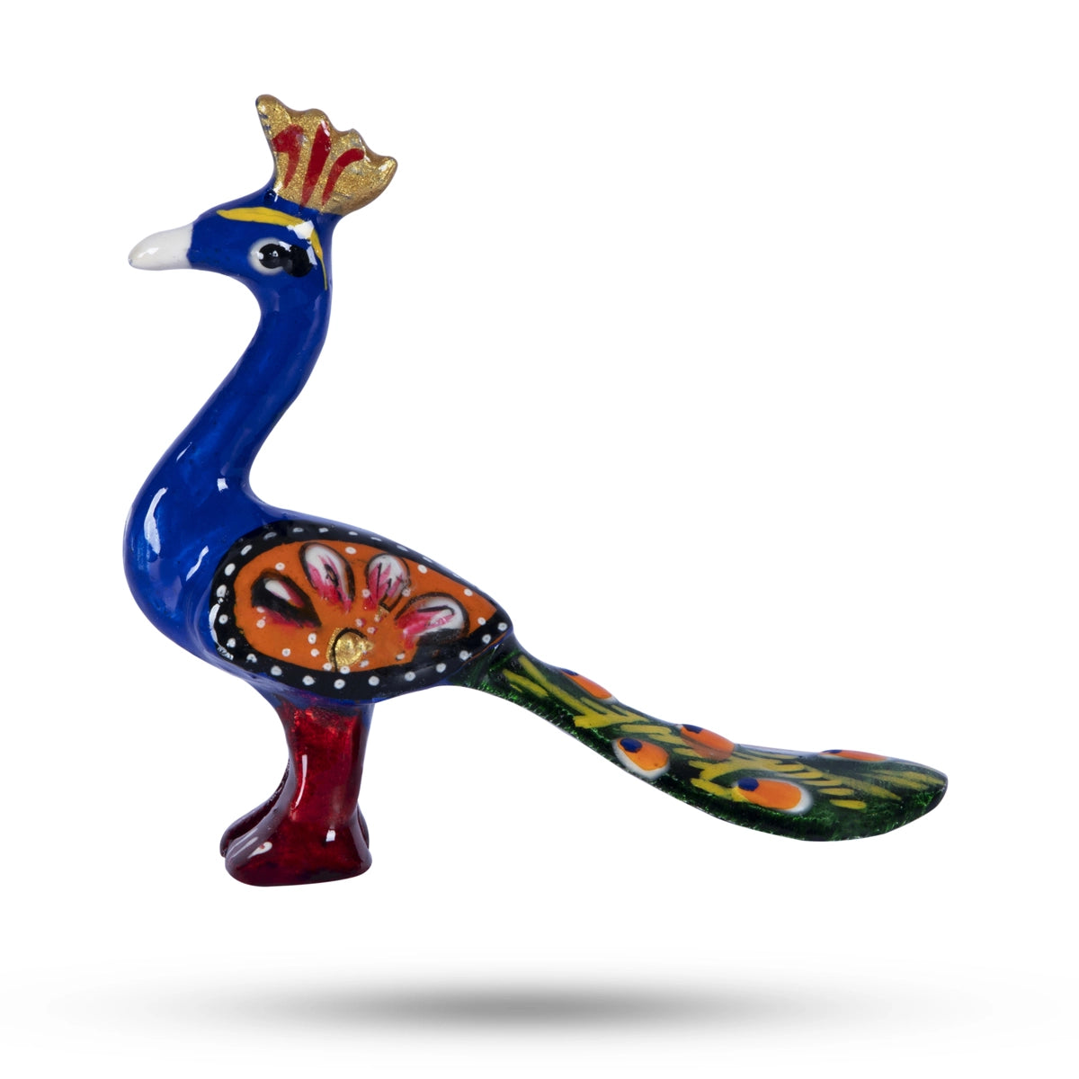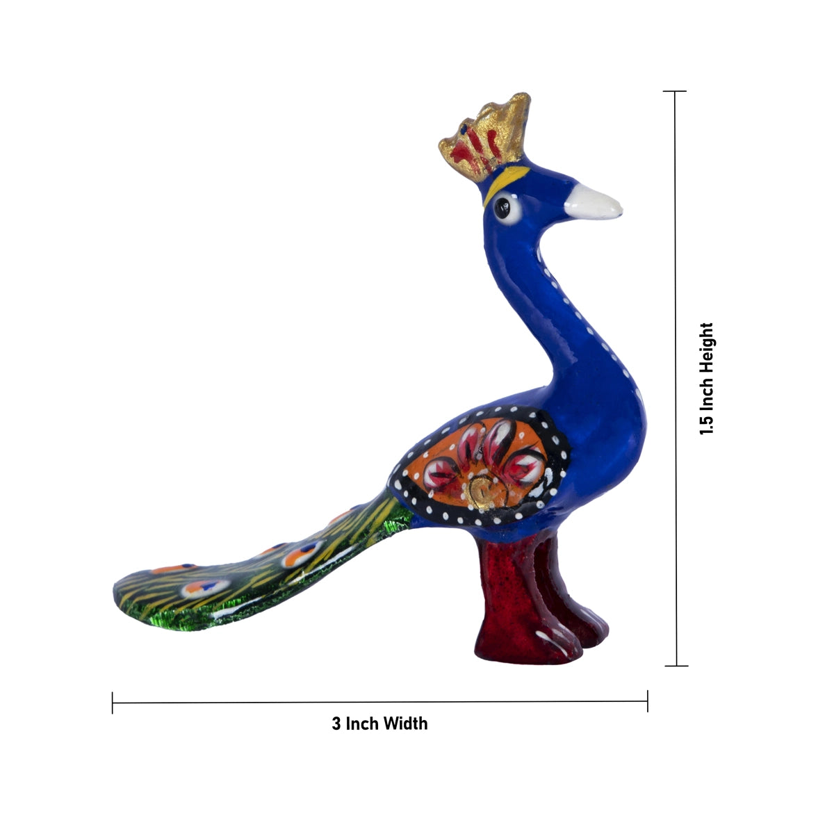 Painted Peacock Statue - 1.5 x 3 Inches | Metal Peacock Idol/ Peacock Figurine for Home