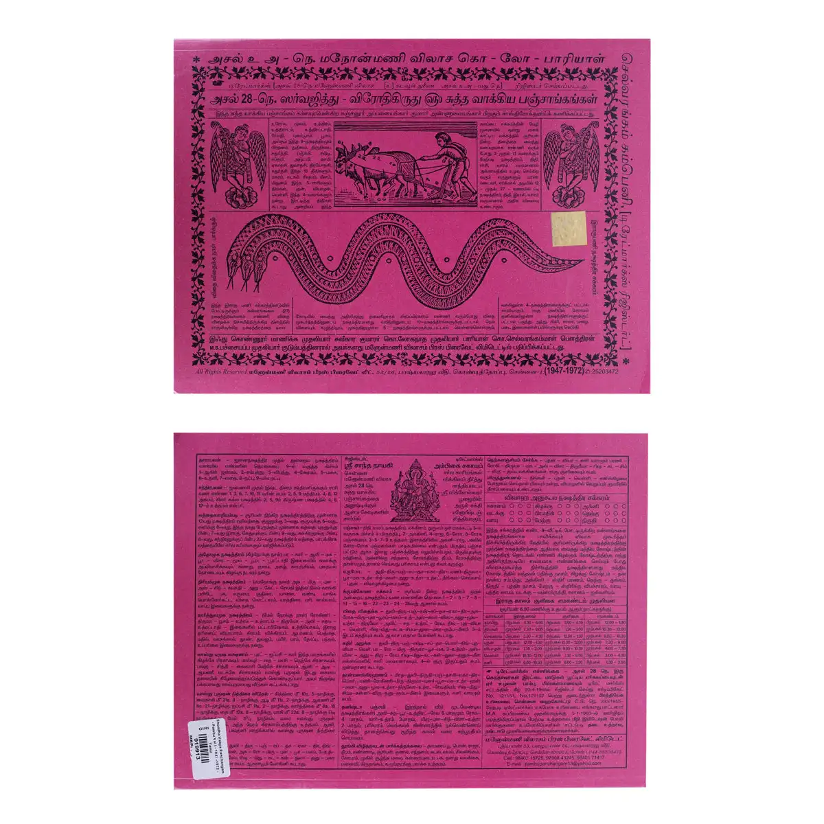 Pambu Panchangam - Volume 1 - Tamil | 1947 - 1972/ Shuddha Vakya Panchangam/ Astrology Book/ Horoscope Book