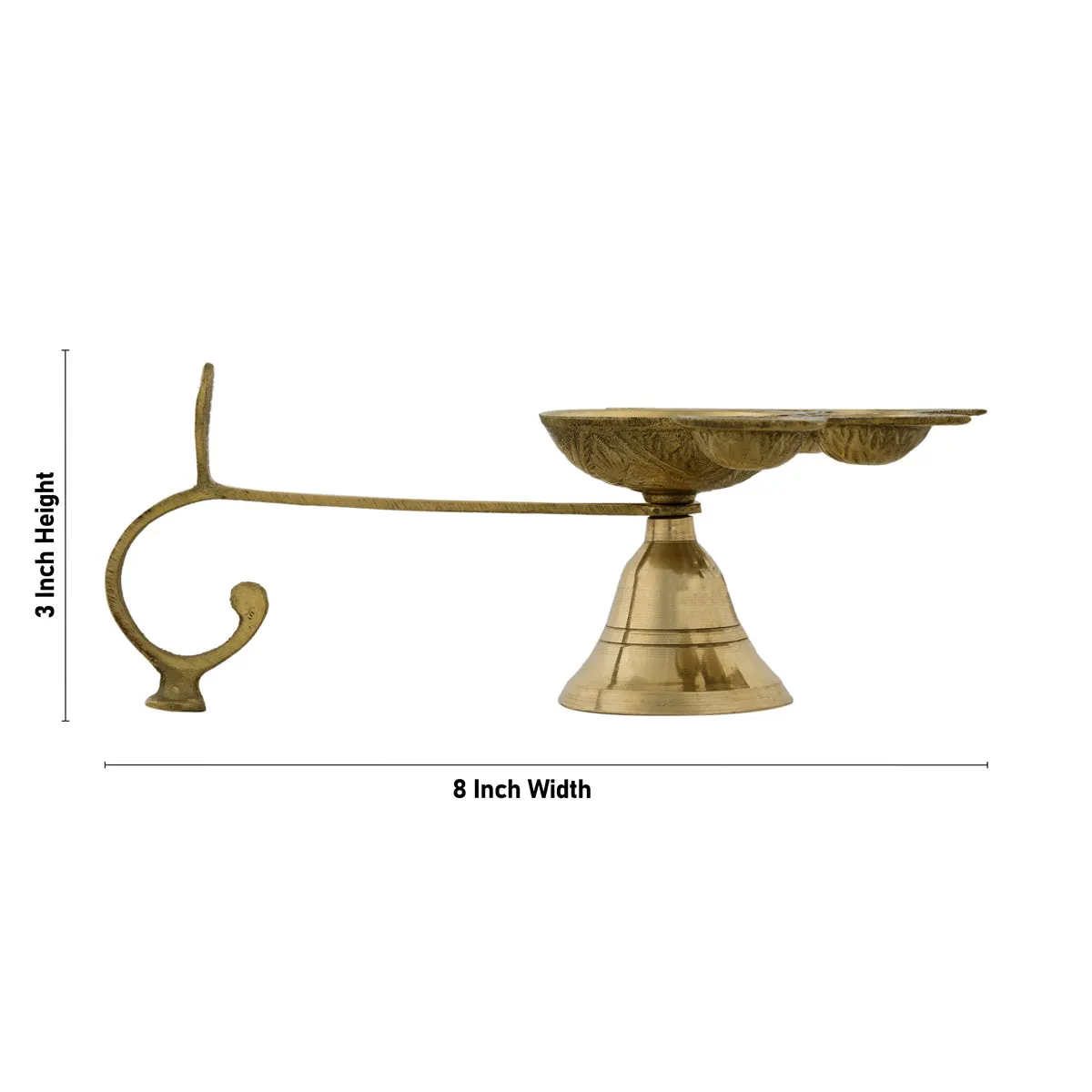 Panch Aarti Diya With Handle - 3 x 8 Inches | Brass Panch Mukhi Diya/ Pancharti/ 5 Face Kapoor Dhani for Pooja