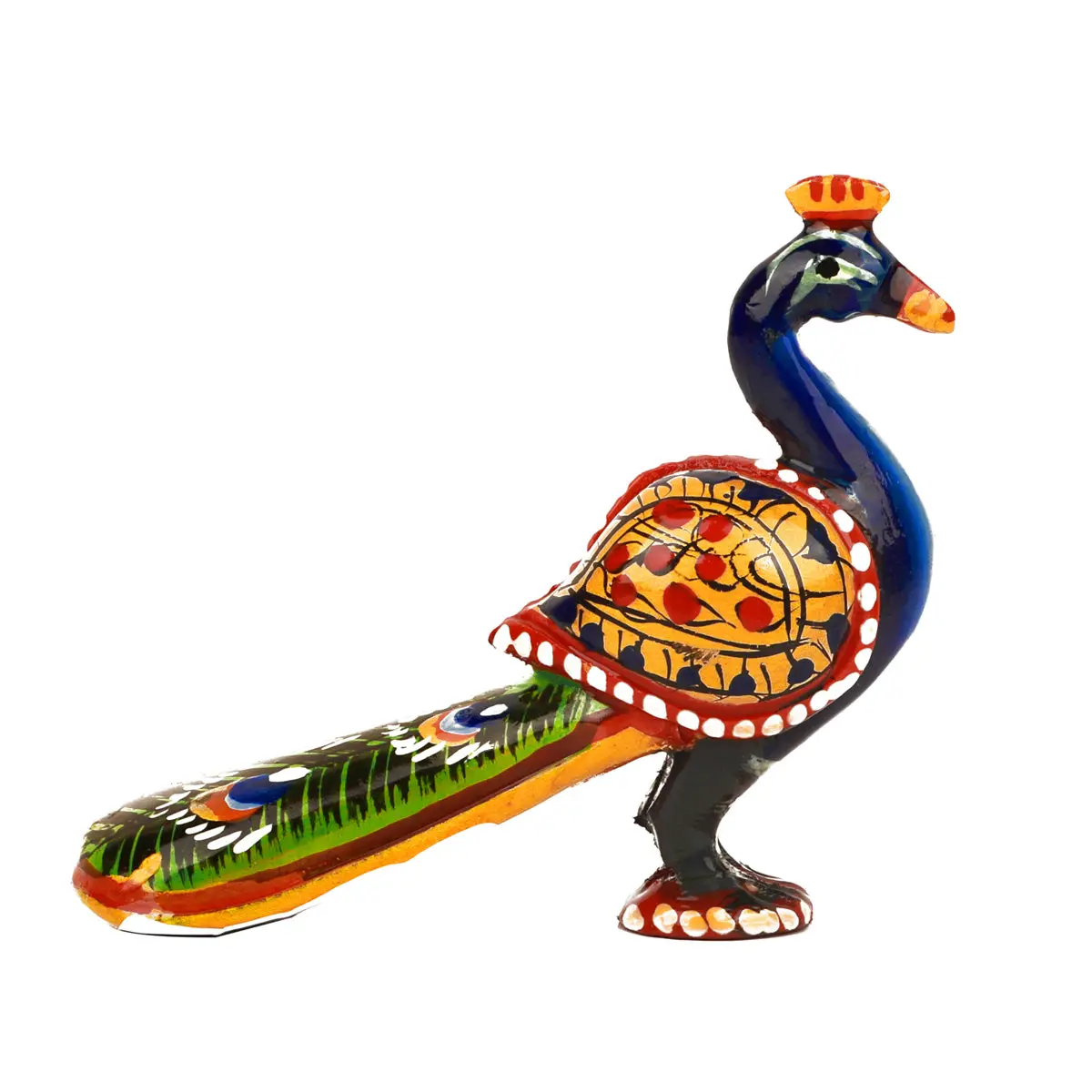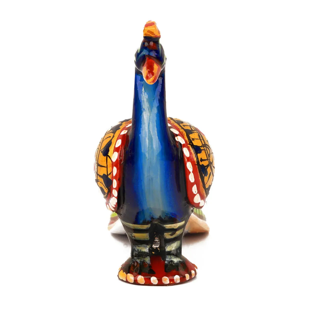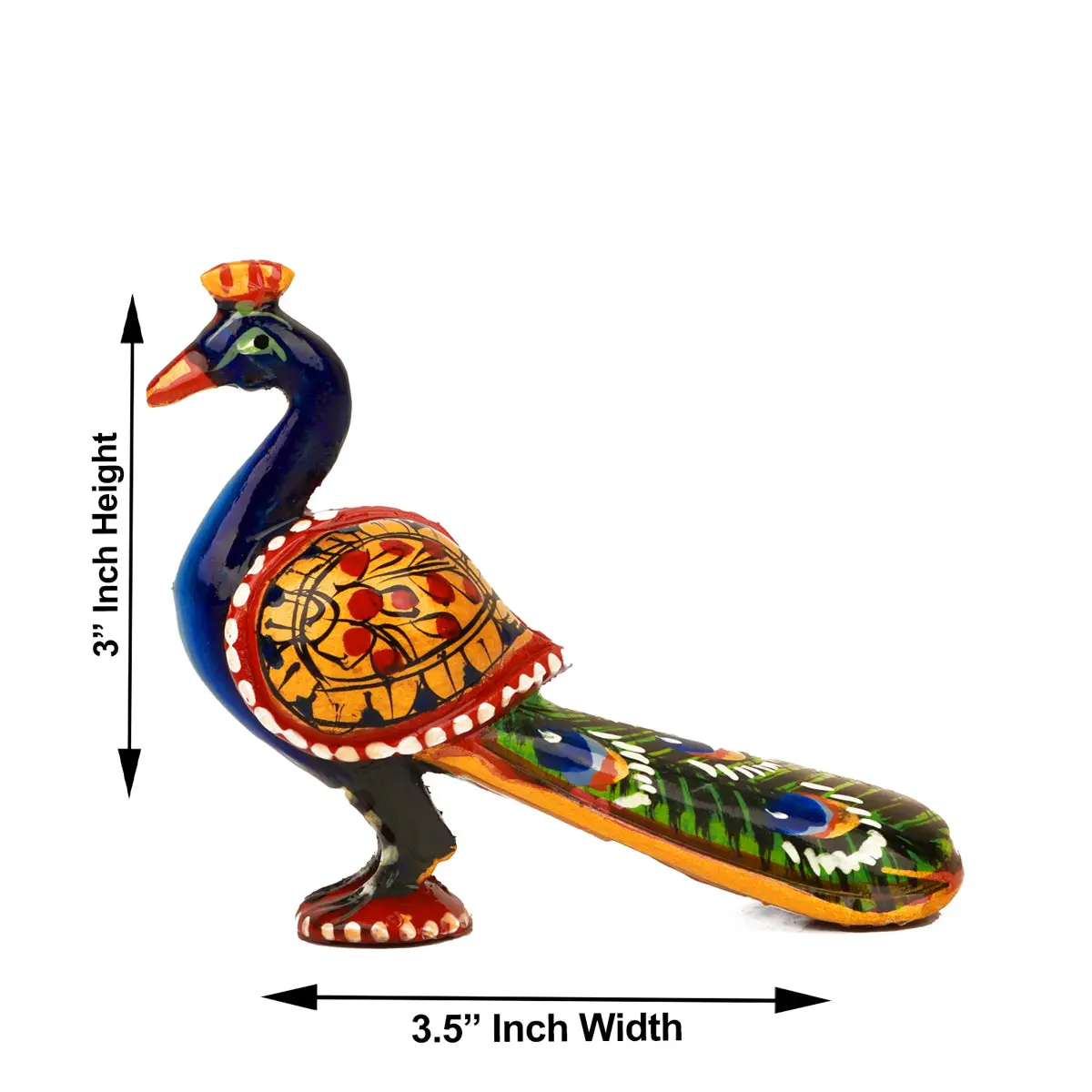 Peacock Statue - 3 x 3.5 Inches | Wooden Peacock Statue/ Painted Peacock Idol for Home Decor