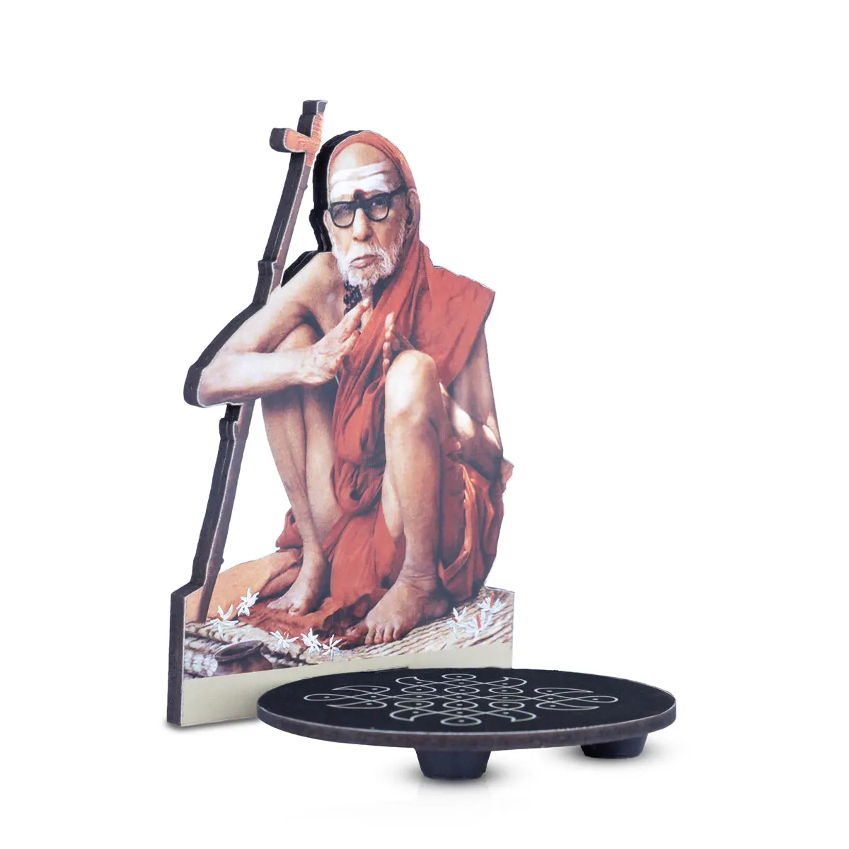 Periyava With Kolam Stand - 5.5 x 4 Inches | Deity With Wooden Bajot for Pooja