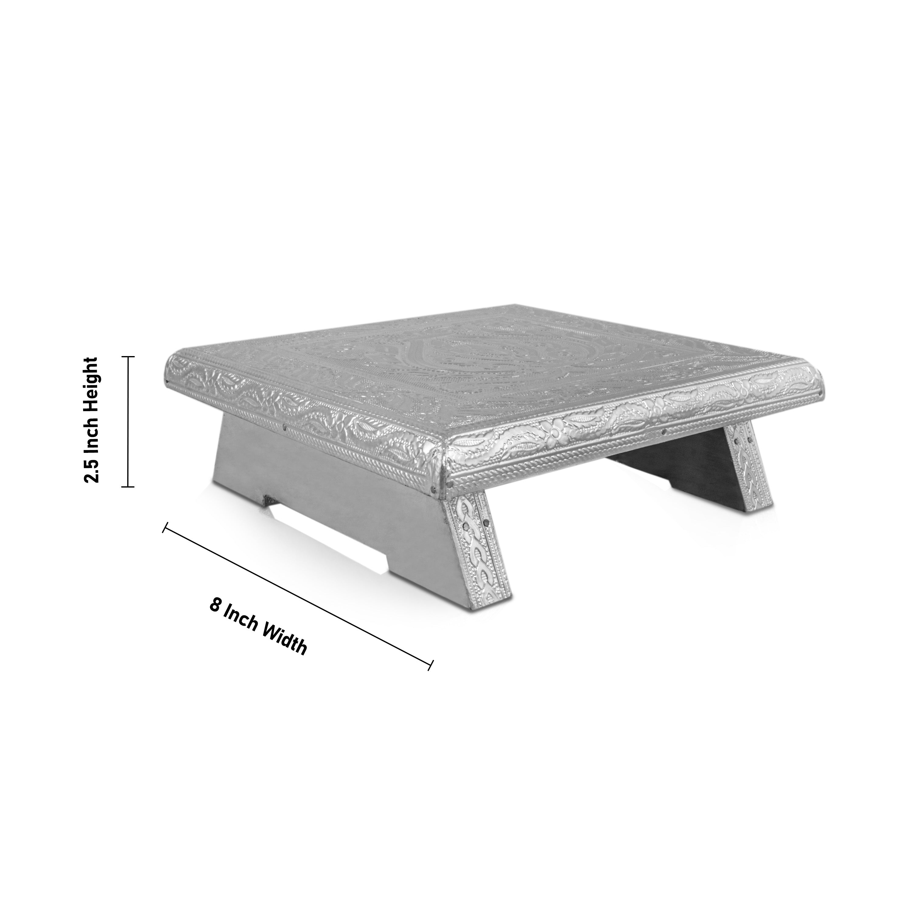 Pooja Chowki - 2.5 x 8 x 8 Inches | Silver Polish Bajot/ Wooden Chowki/ Patla for Home
