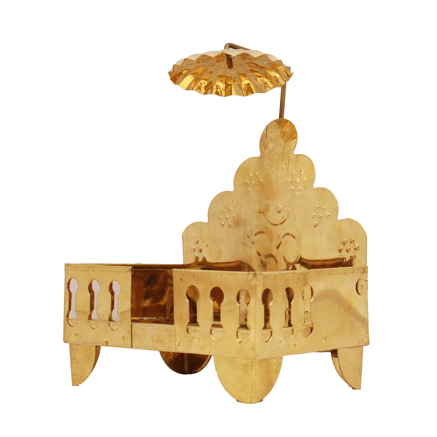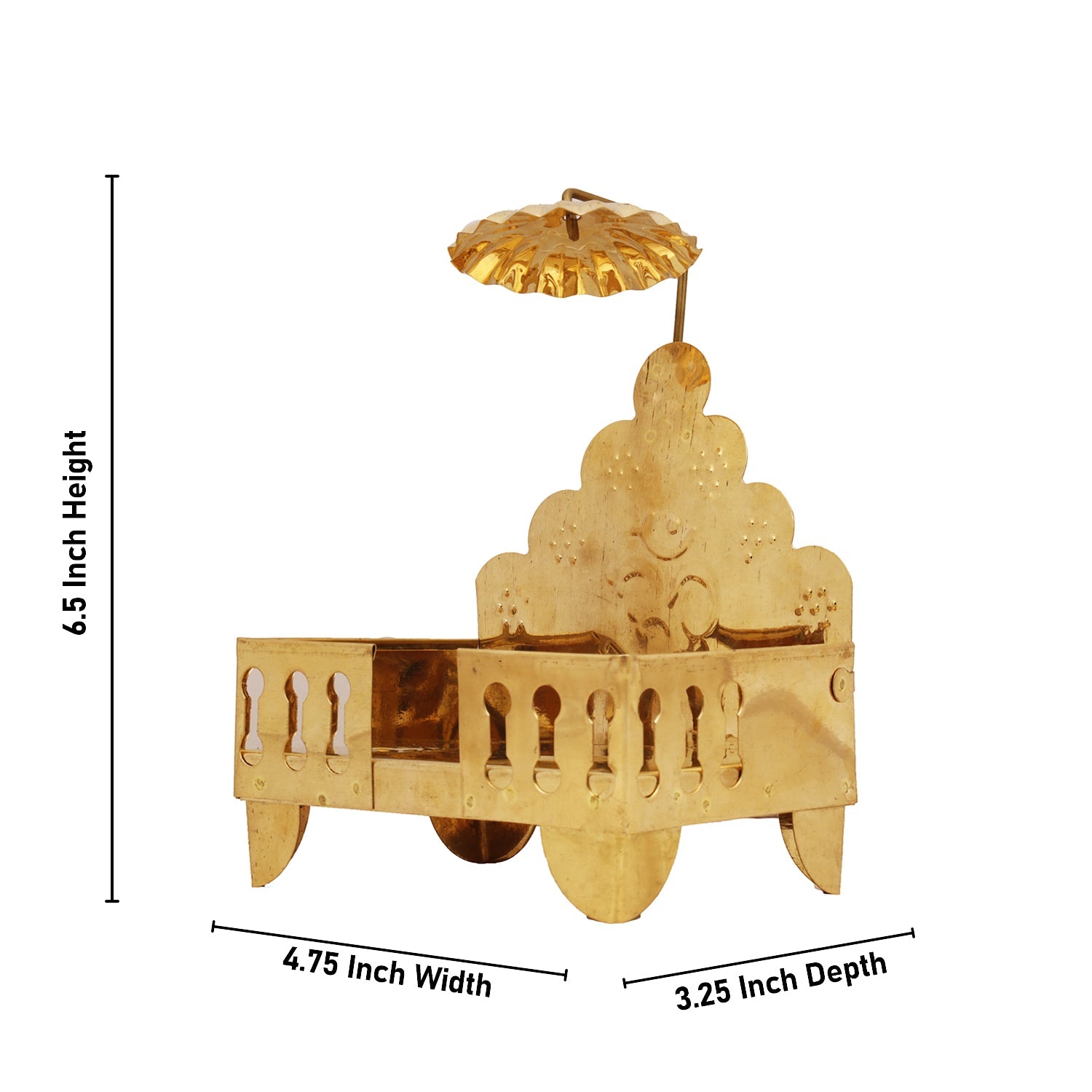 Pooja Chowki - 6.5 x 4.75 Inches | Brass Manai with Chatri/ Patla for Deity/ 140 Gms Approx