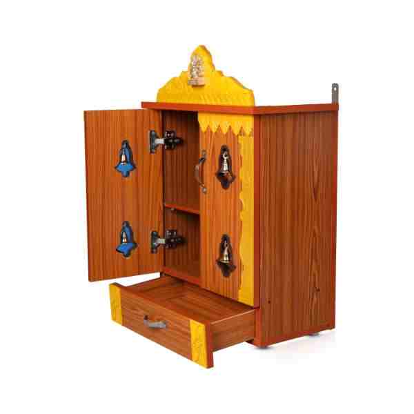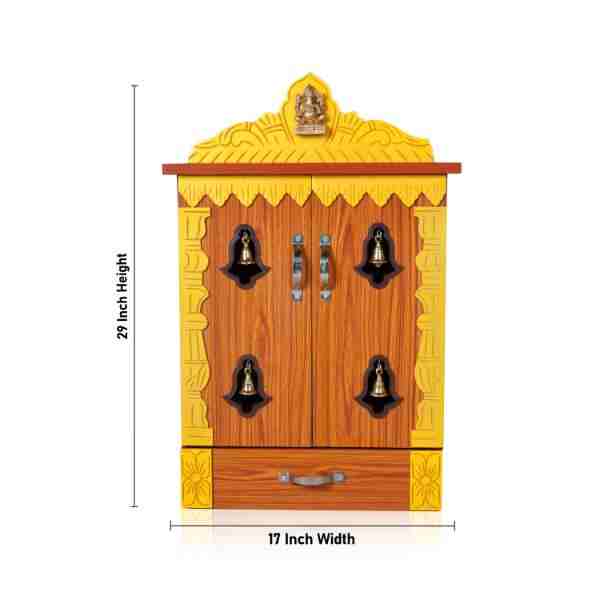 Pooja Mandir with Bell - Full Door - 29 x 17 Inches | Wooden Mandap with Leg/ Pooja Mandapam for Home
