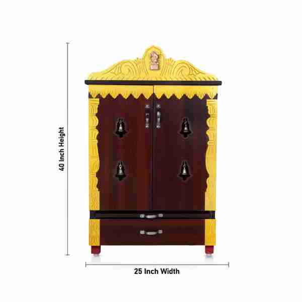 Pooja Mandir With Doors - 40 x 25 Inches | Wooden Mandir/ Bell With Leg Puja Stand/ Wooden Temple for Home