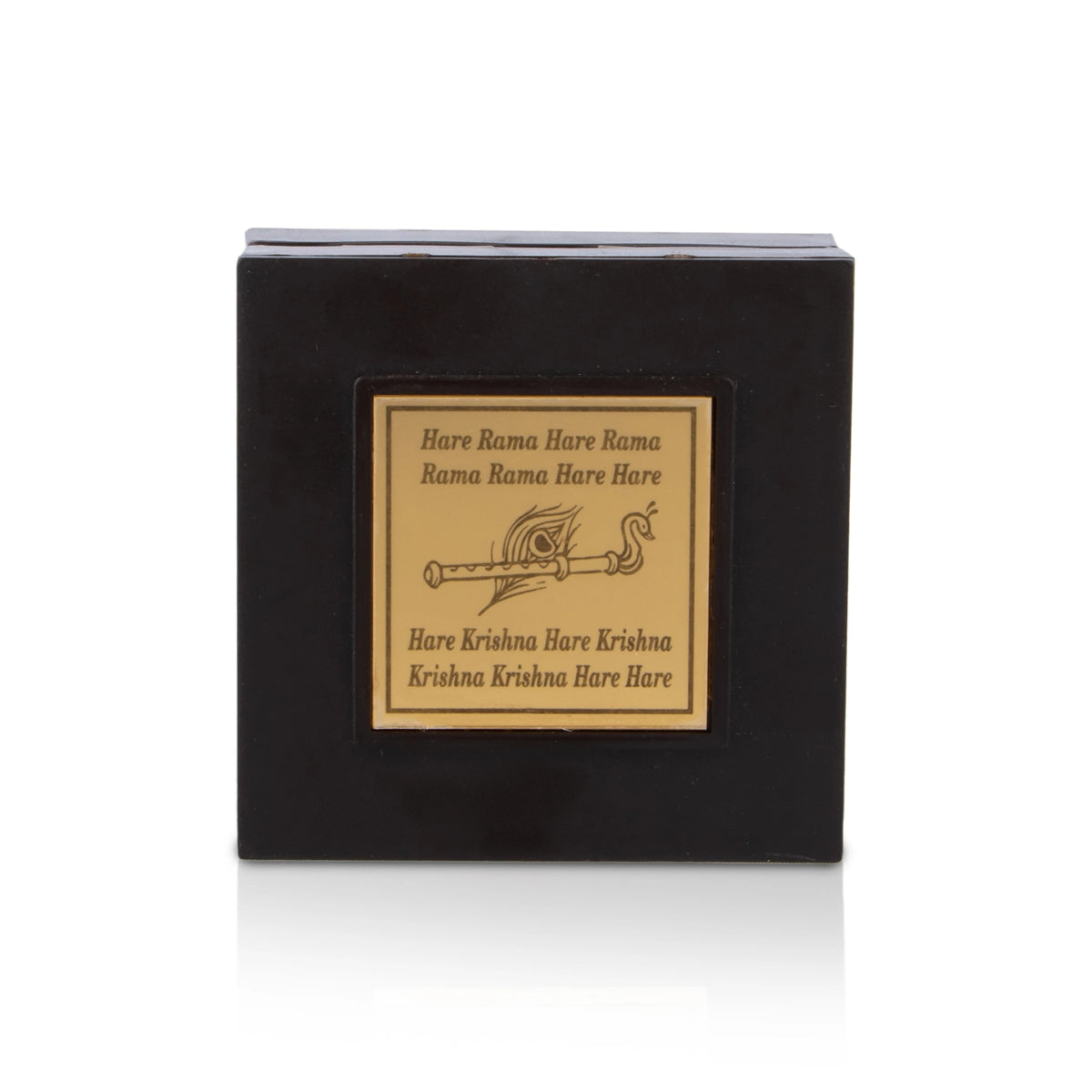 Radha Krishna Pooja Box - 3.05 x 3.05 Inches | Gold Polish Radha Krishna Puja Box/ Charan Paduka Box for Home