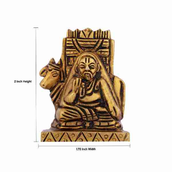 Raghavendra Swamy Idol - 2 x 1.75 Inches | Antique Brass Statue/ Raghavendra Statue for Pooja/ 200 Gms Approx