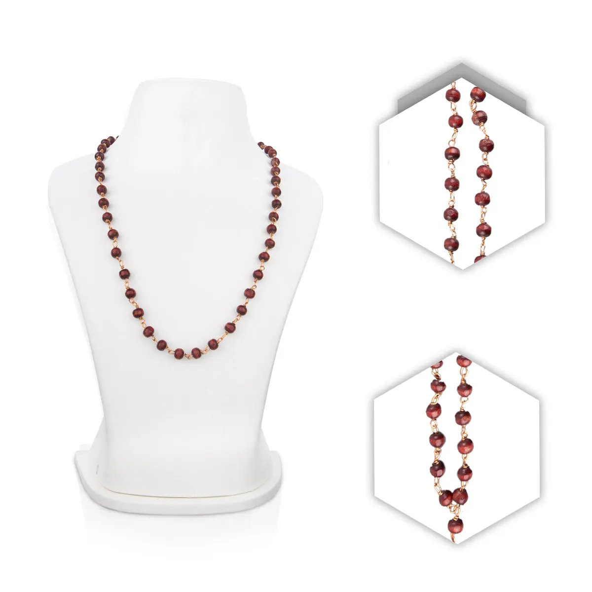 Red Chandan Mala with Copper Knot - 28 Inches | 7 mm/ 108 Beads Sandalwood Mala for Meditation/ 30 Gms Approx