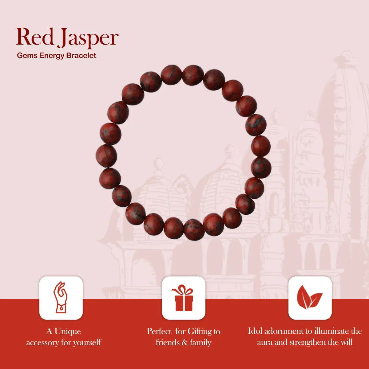 Red Jasper Bracelet - 2.5 Inches | Red Crystal Bracelet/ Stone Jewellery for Men & Women