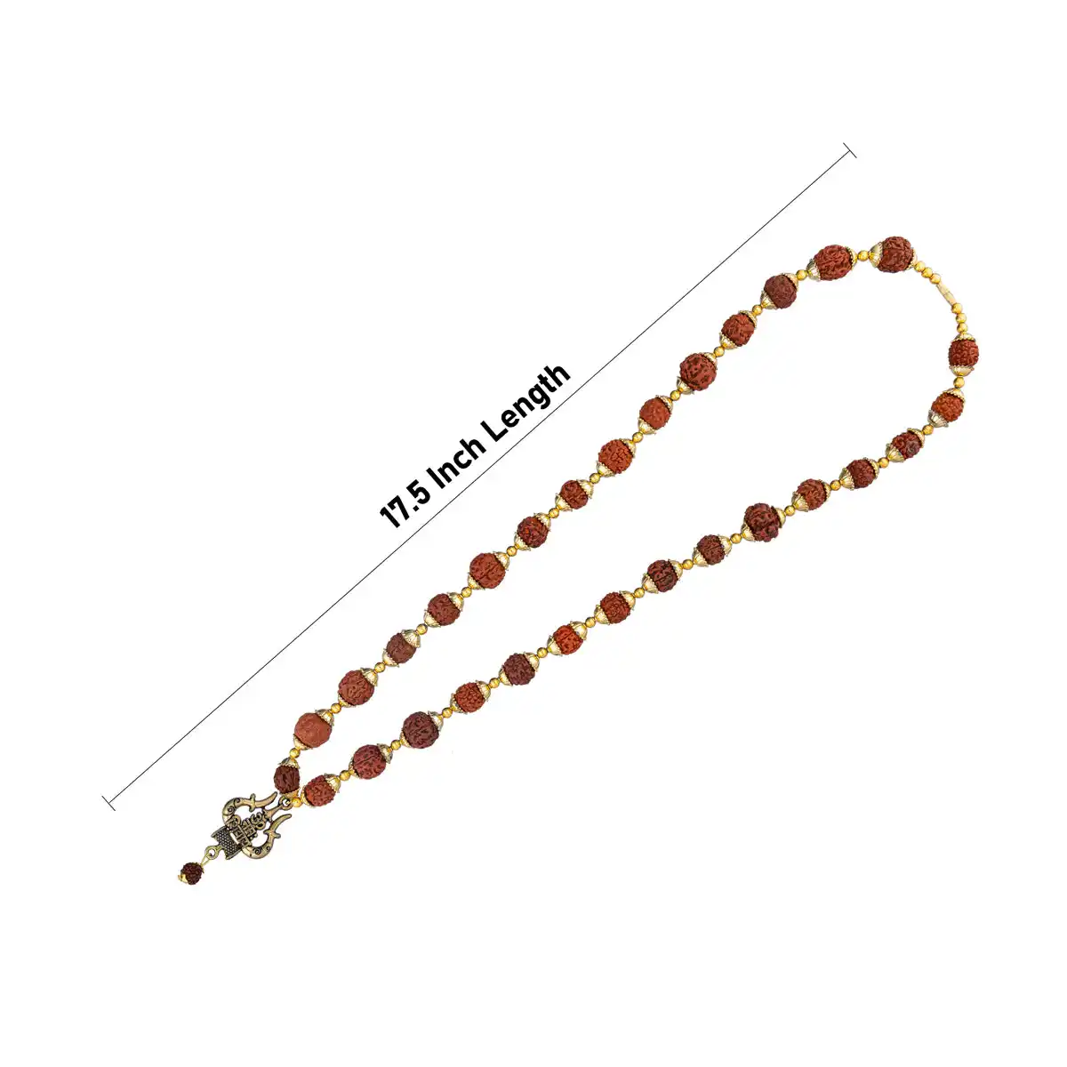 Rudraksha Mala With Trishul Locket - 17.5 Inches | Ruthratcham Malai With Gold Polish Cup for Meditation