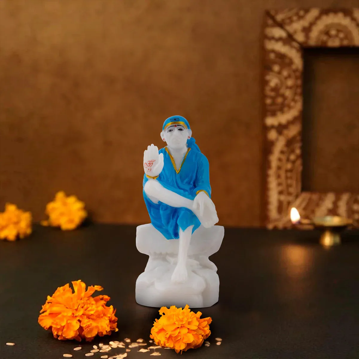 Saibaba Statue - 7 x 3 Inches | Saibaba Idol/ Sai Baba Murti for Pooja/ Assorted Colours & Design