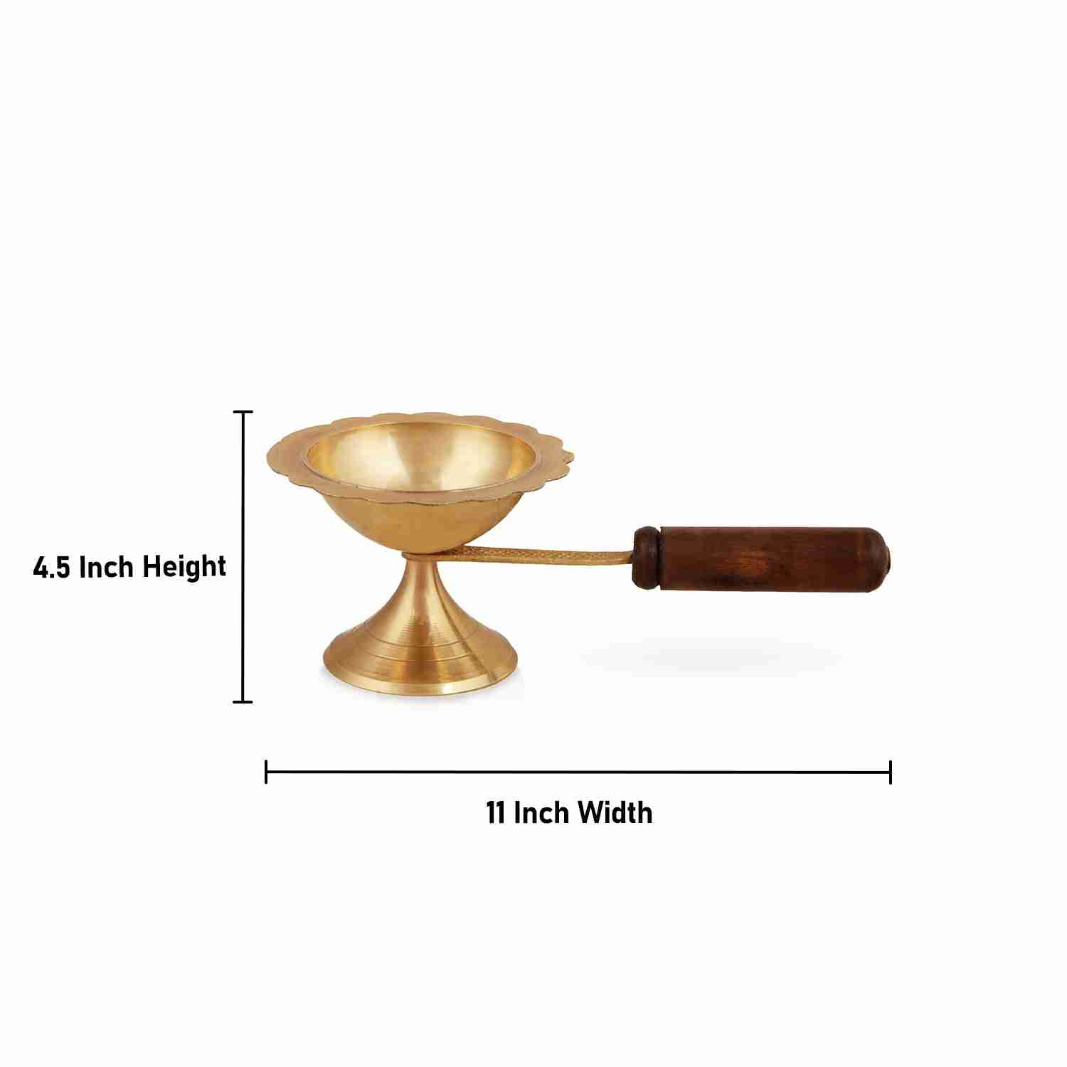 Sambrani Stand - 4.5 x 11 Inches | Brass Dhoopakal with Wooden Handle/ Dhoop Stand/ Dhoop Holder for Pooja
