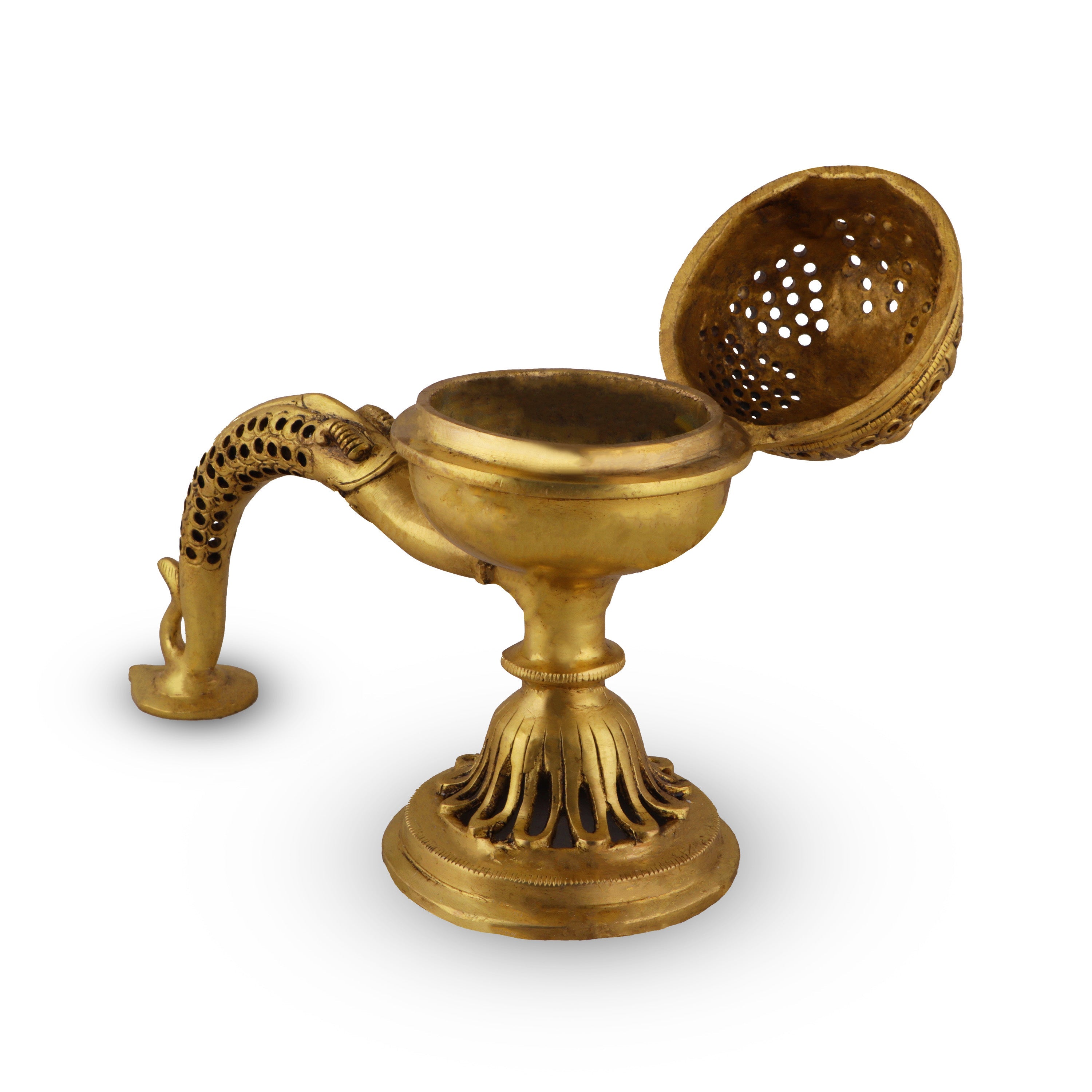Sambrani Stand - 8 x 9 Inches | Antique Brass Dhoop Stand/ Dhoop Holder for Pooja
