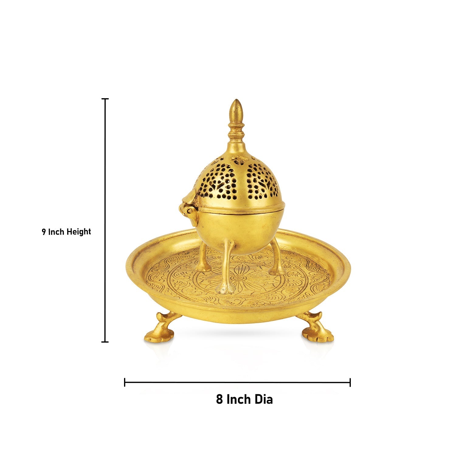 Sambrani Stand - 9 x 8 Inches | Antique Brass Dhoop Stand/ Dhoop Holder for Pooja
