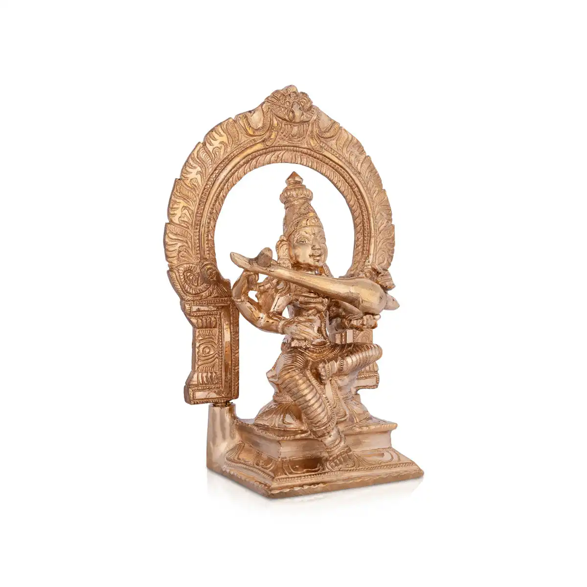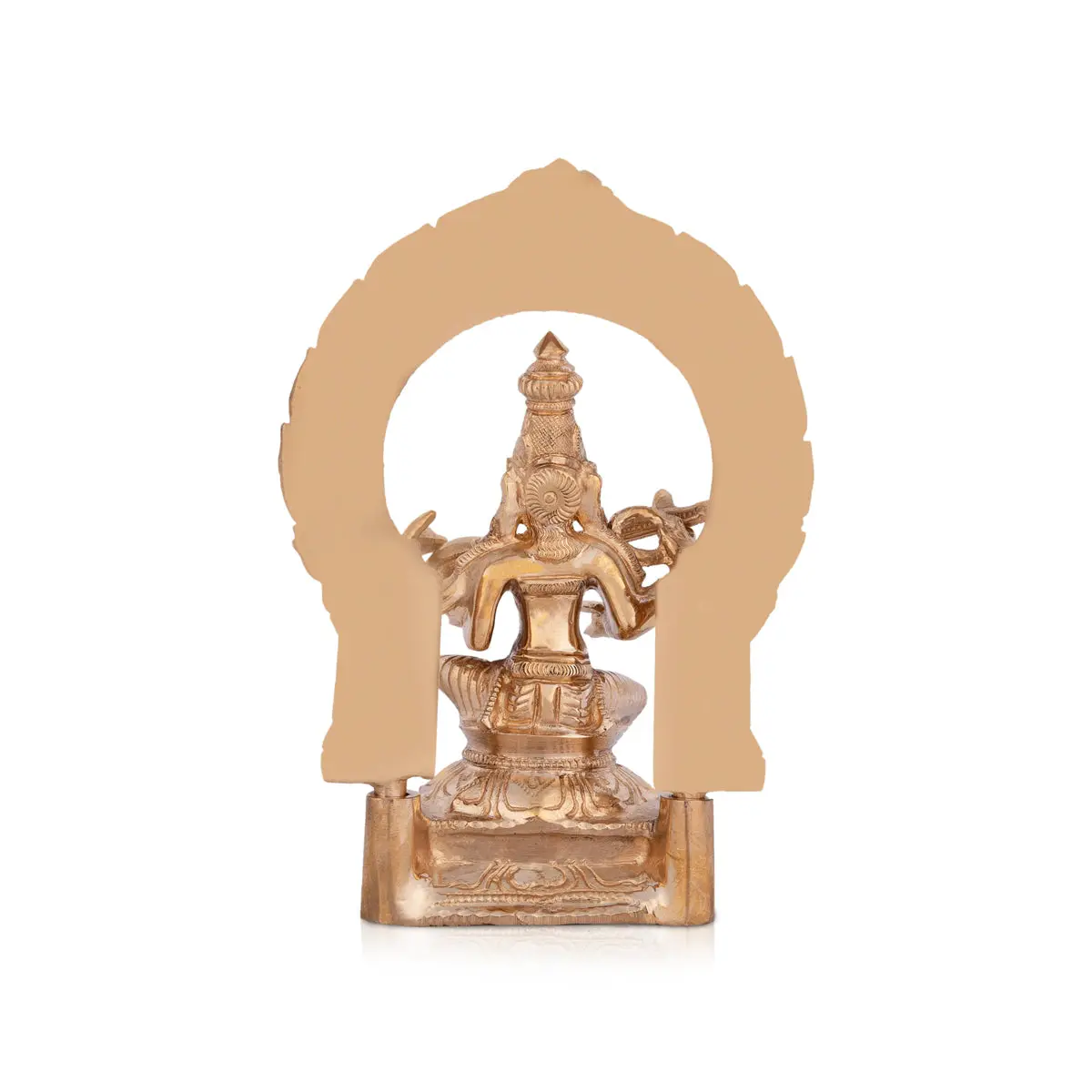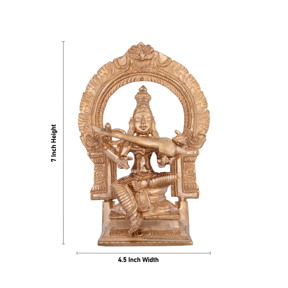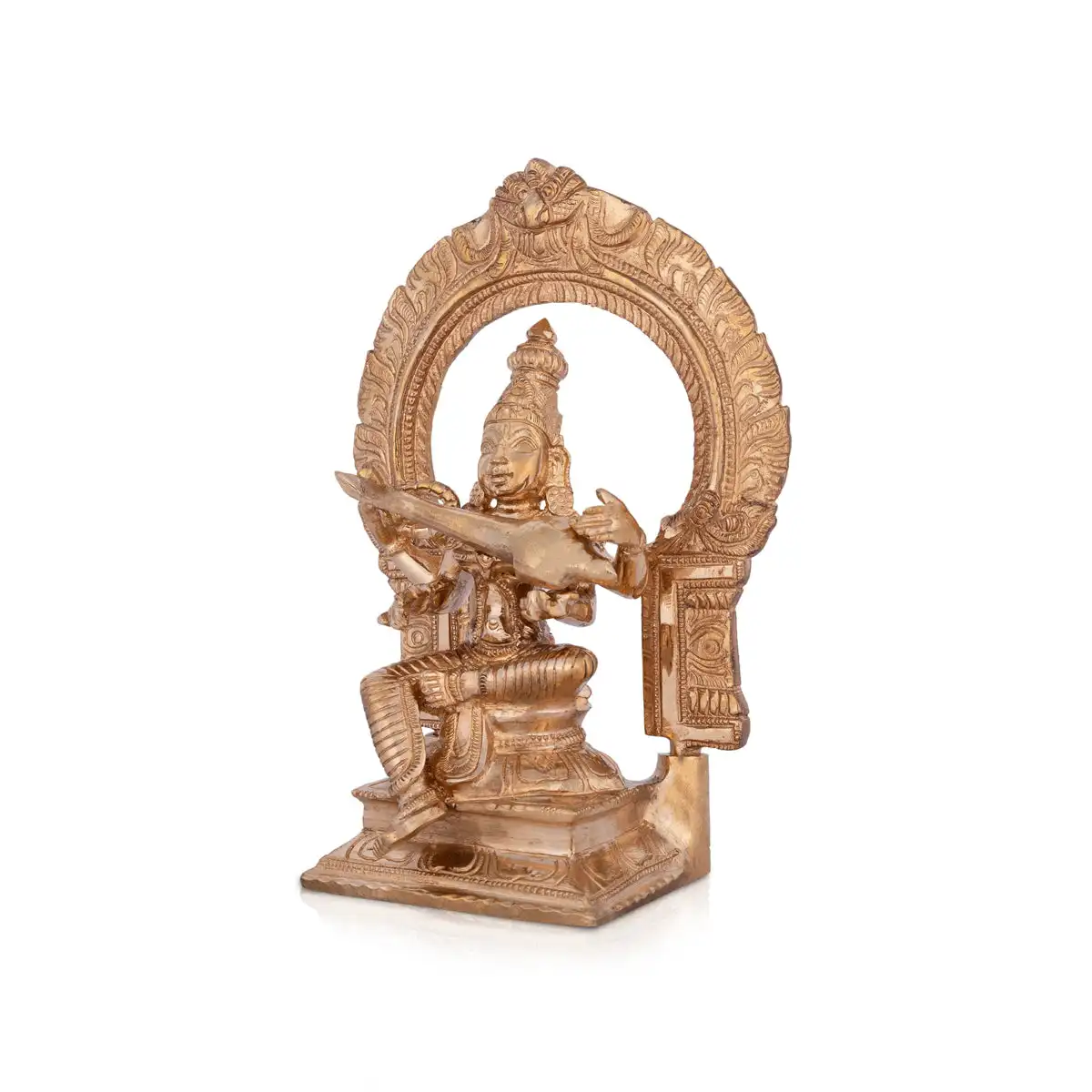 Saraswati Murti Sitting On Base With Arch - 7 x 4.5 Inches | Panchaloha Idol/ Saraswathy Idol for Pooja