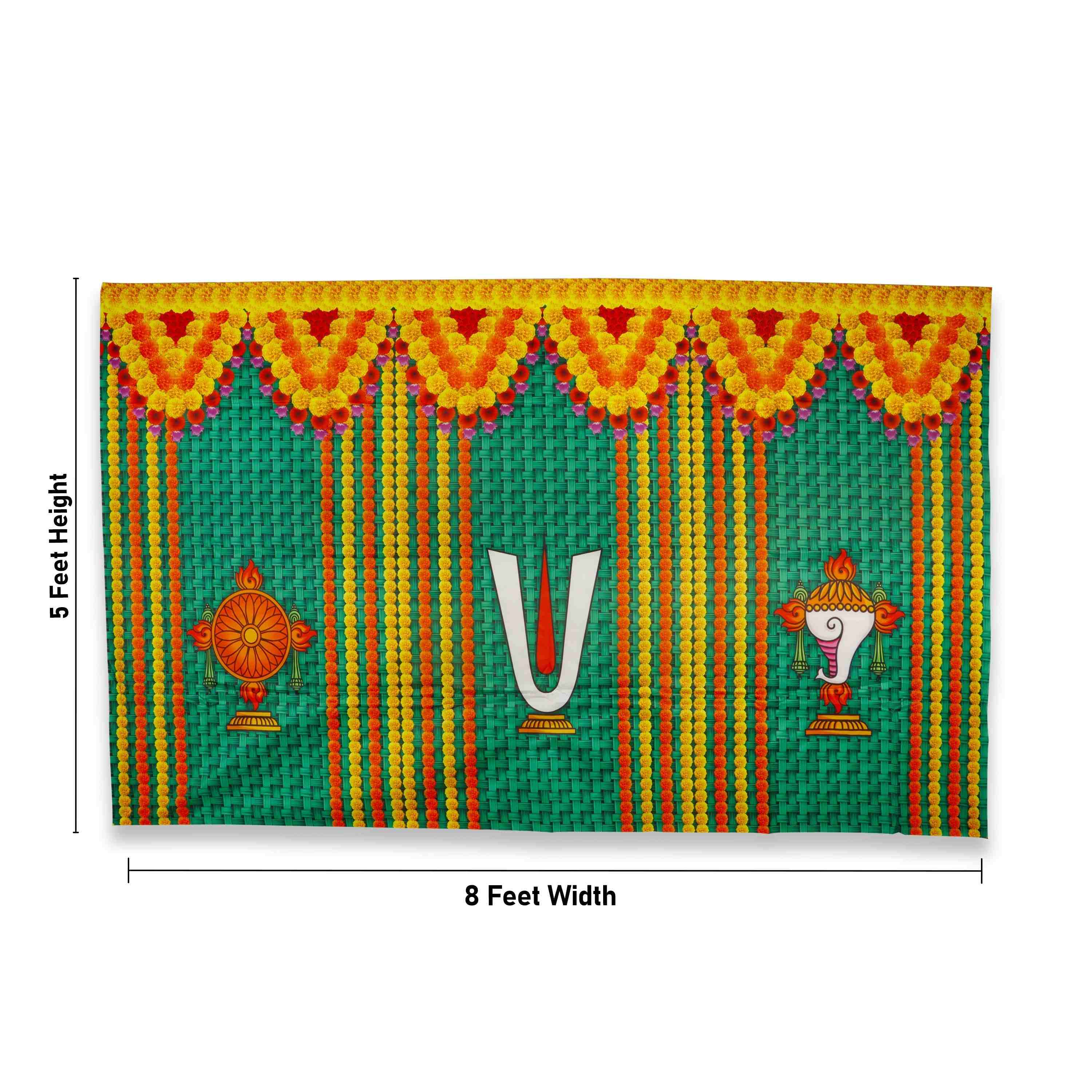 Satin Screen - 8 x 5 Feet | Shank Chakra Nama Curtain for Pooja Room