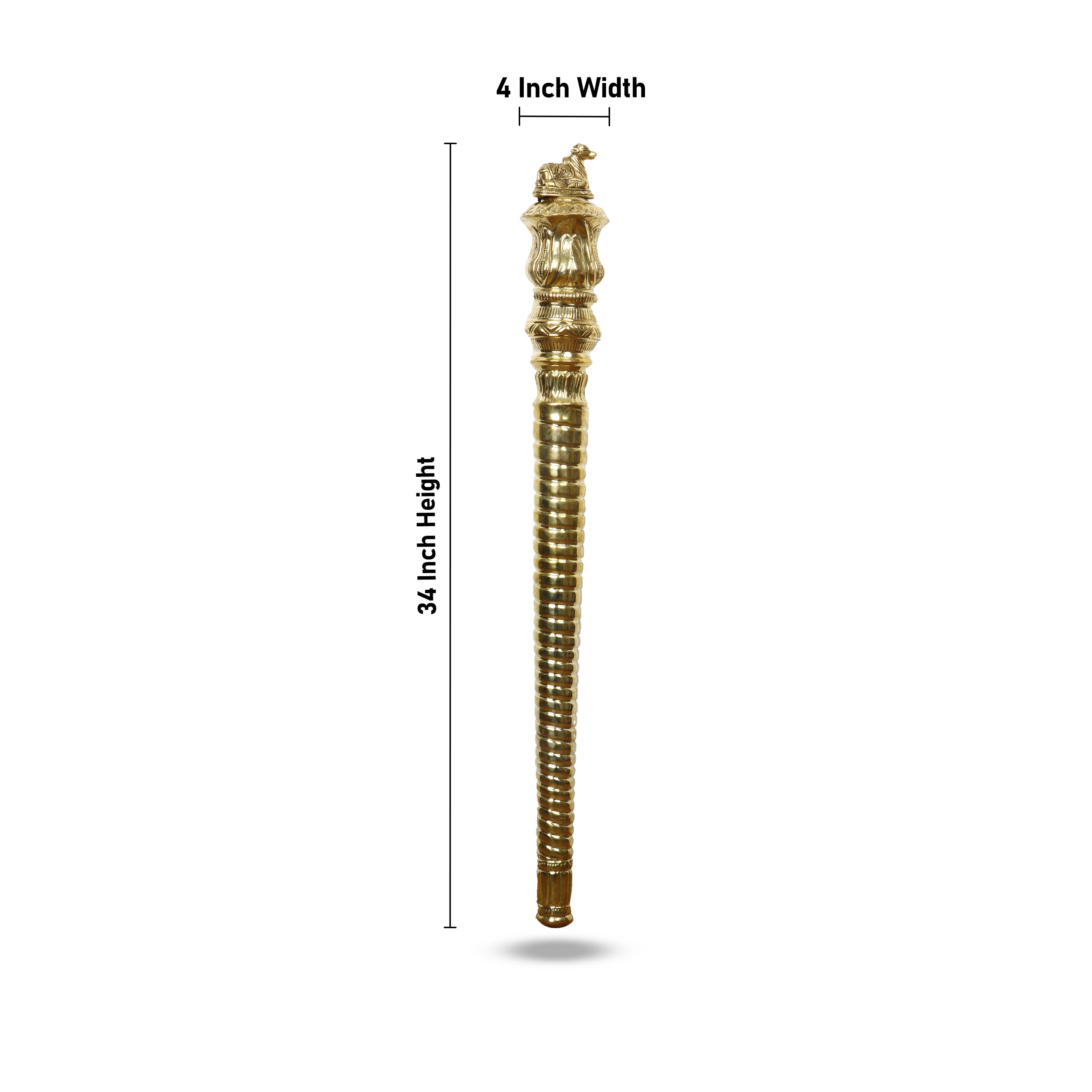 Sengol with Nandi Stick - 34 Inches | Brass Idol/ Sengol Statue for Pooja