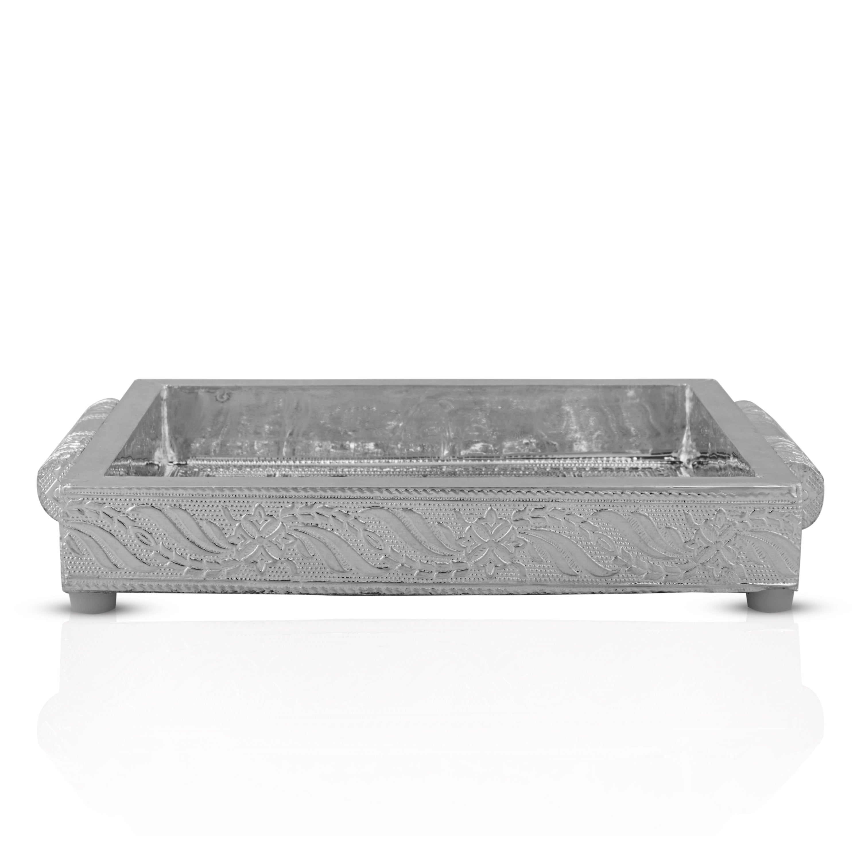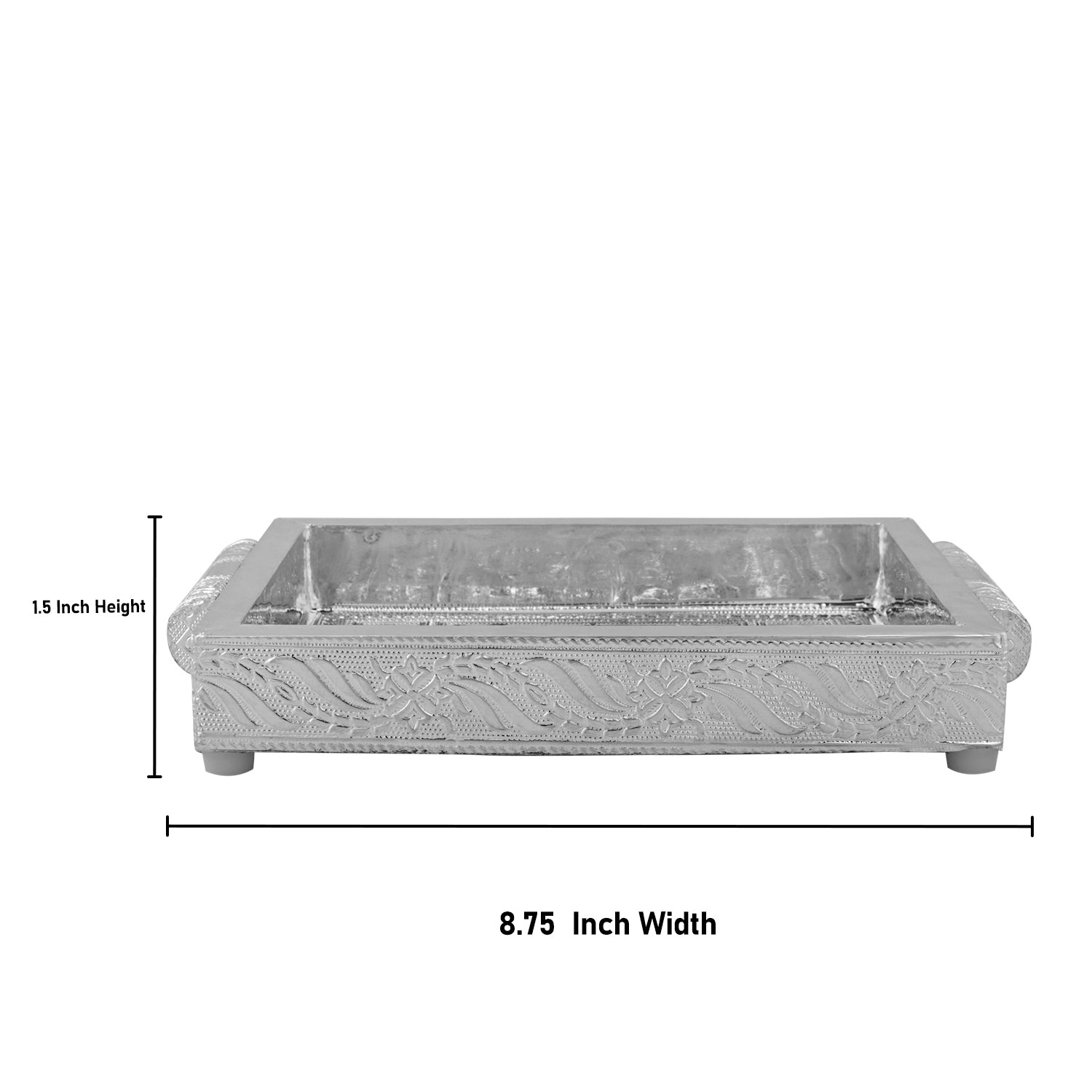 Serving Tray - 1.5 x 8.75 Inches | Silver & Gold Finish/ Aluminium Pooja Plate/ Meenakari Thali Plate for Home