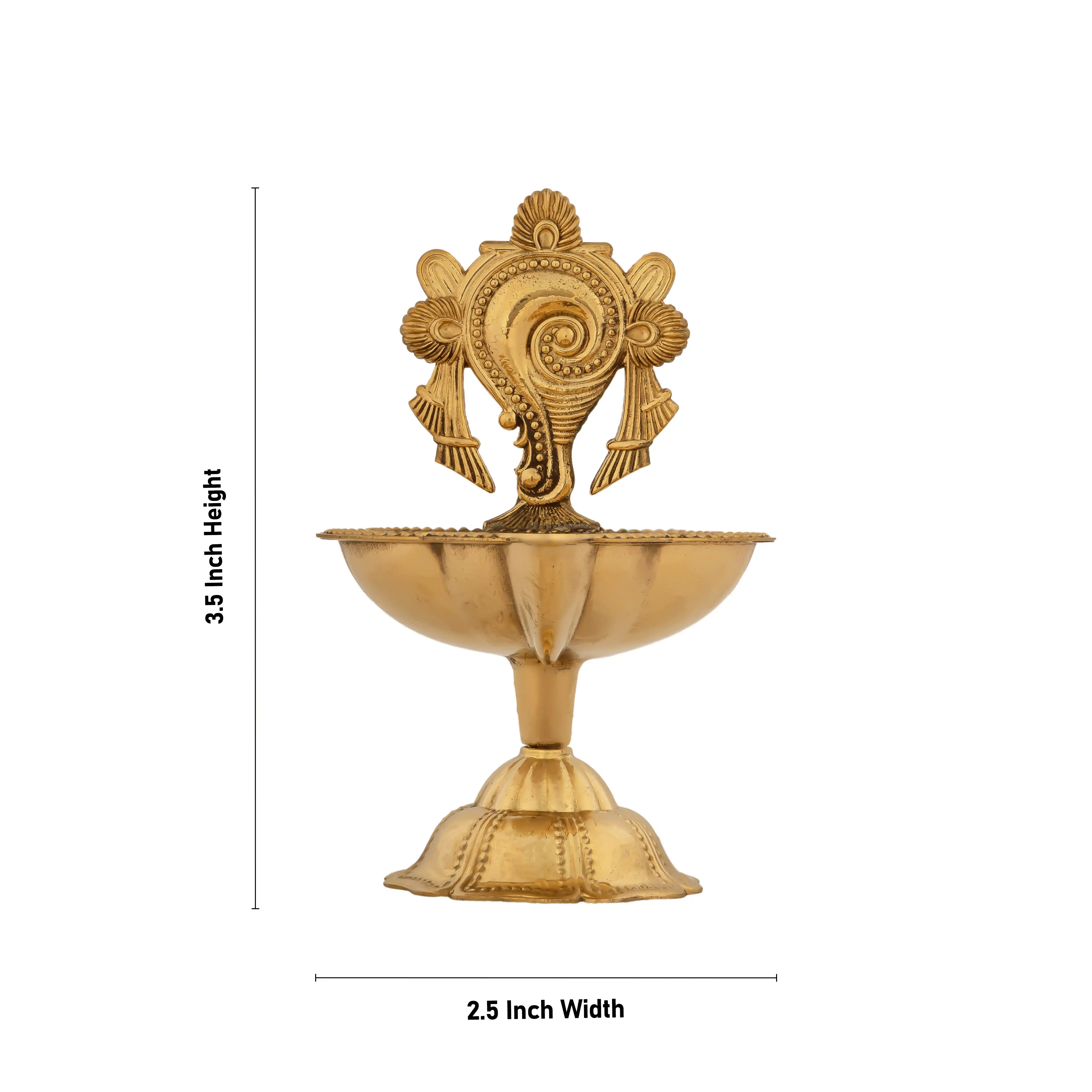 Shankh Design Brass Lamp With Base - 3.5 x 2.5 Inches | Brass Deepam/ Brass Vilakku for Pooja/ 60 Gms Approx