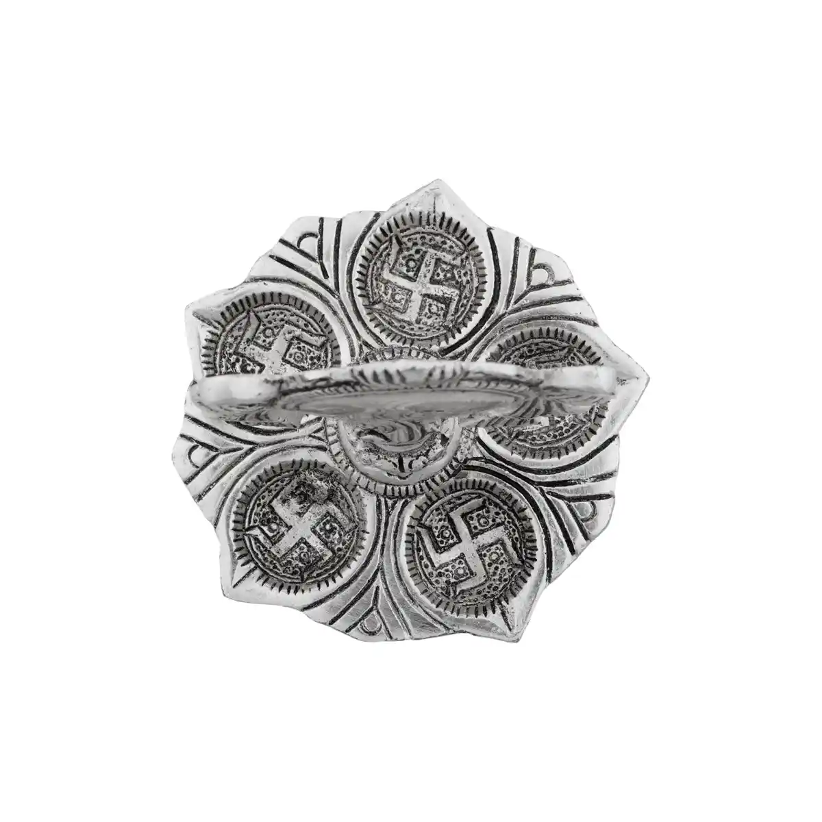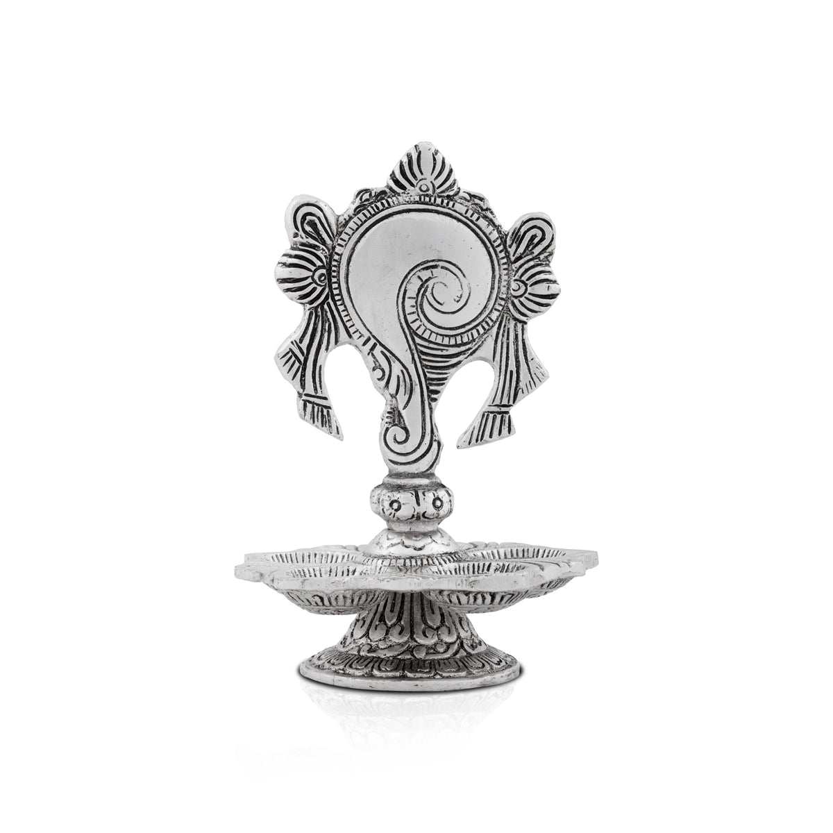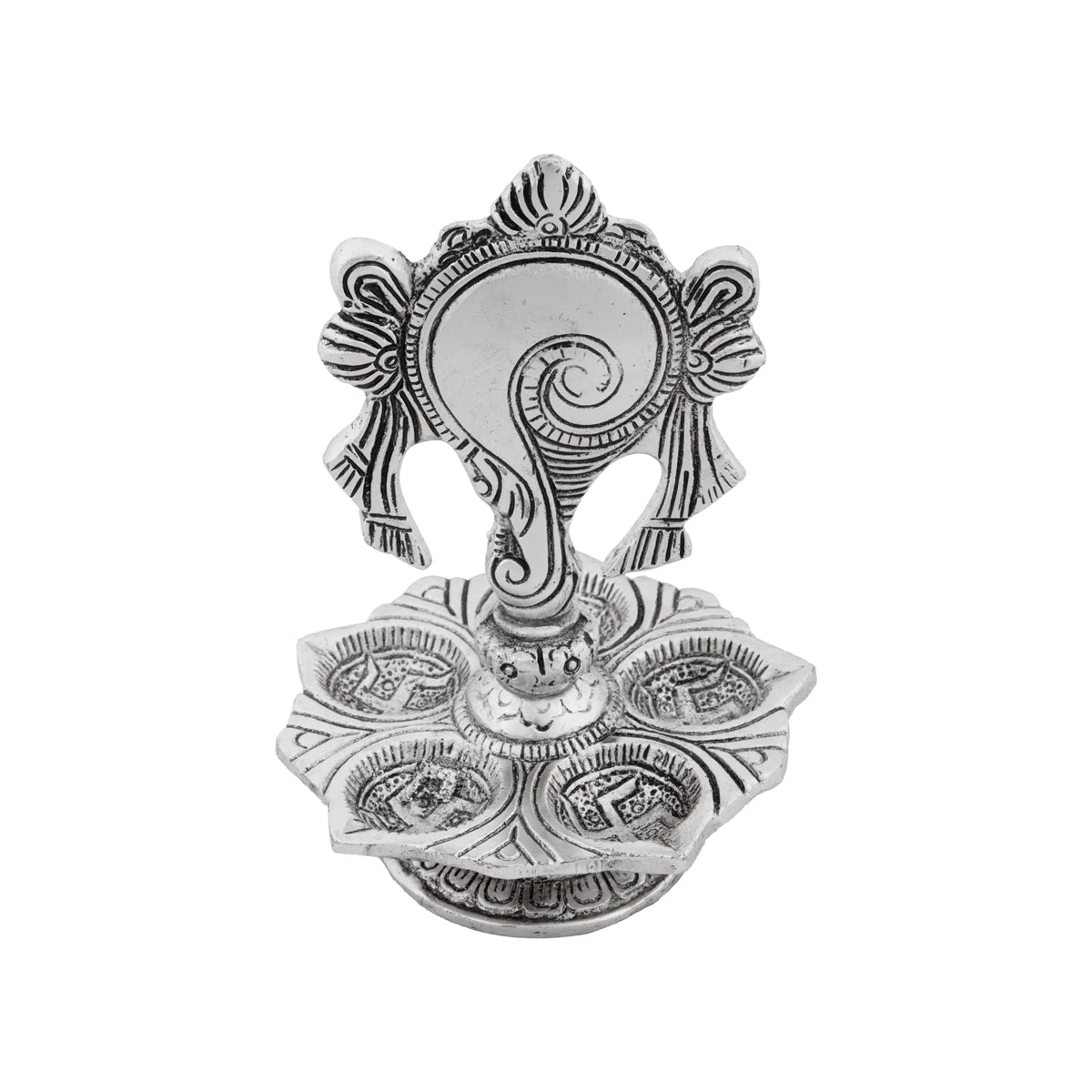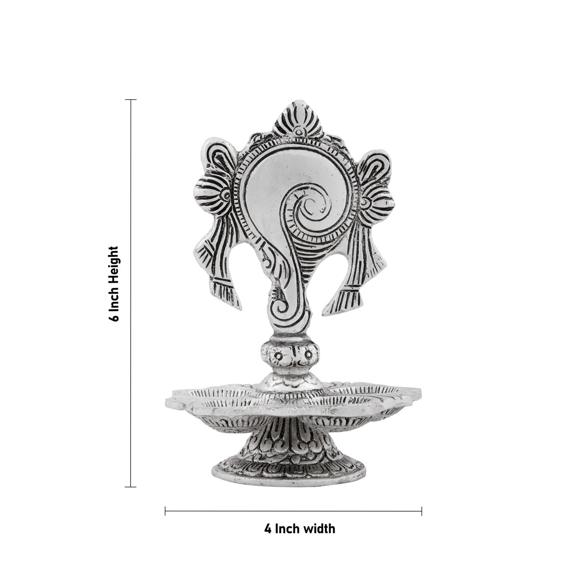 Shankh with 5 Face Deep - 6 x 4 Inches | Aluminium Diya/ Silver Polish Shankh Lamp for Pooja/ 160 Gms Approx