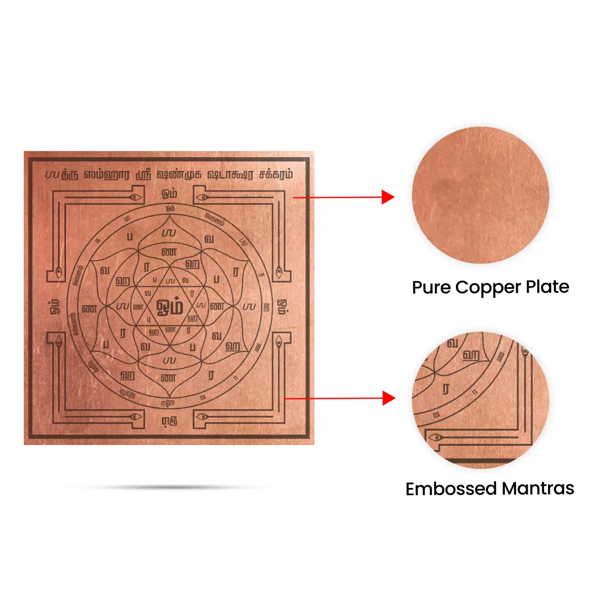 Shanmuga Satacharam Yantra - 4 X 4 Inches | Tamil Shanmuga Yantra/ Copper Yantra/ Pooja Yantra For Protection