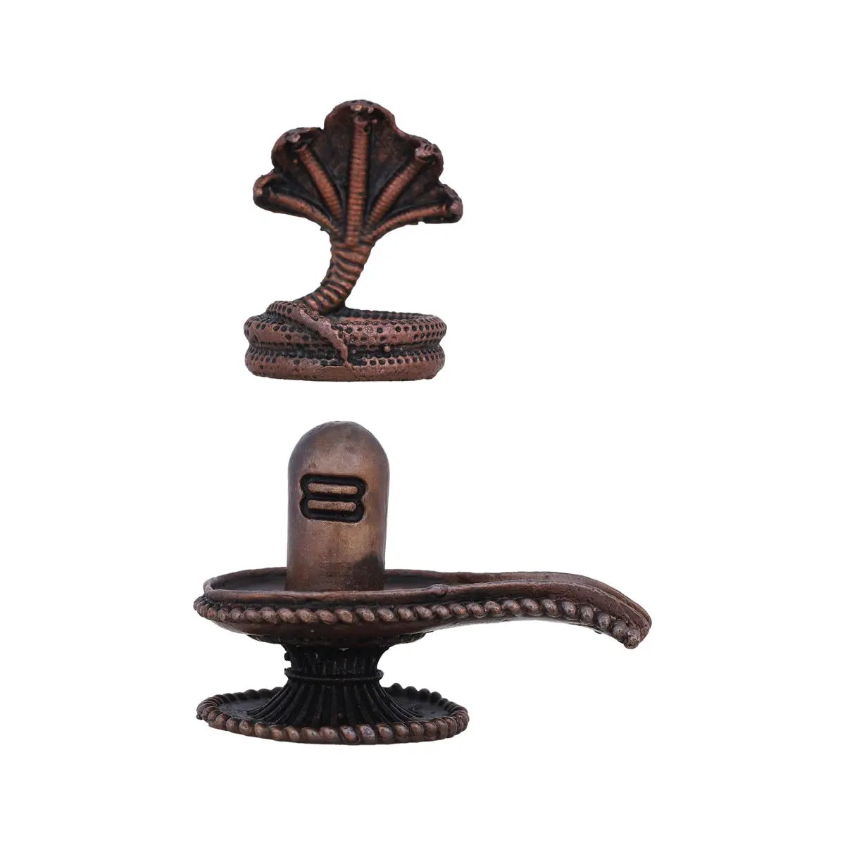 Shiv Ling Murti With Nag - 1.5 x 2 Inches | Copper Idol/ Antique Polish Shiva Lingam Statue for Pooja