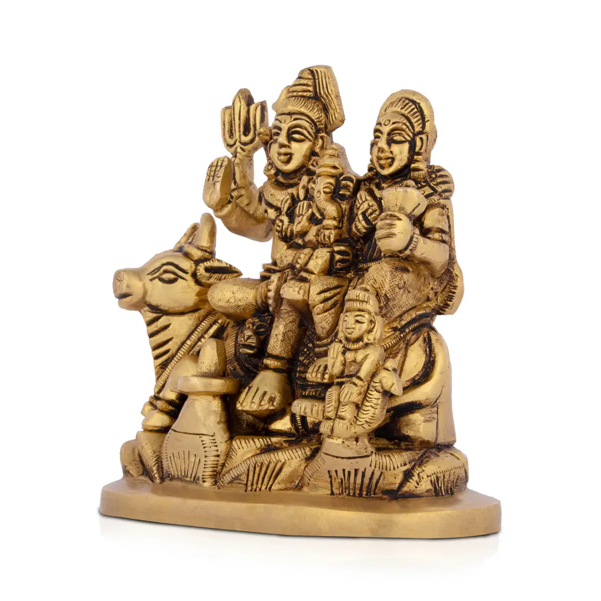 Shivan Family - 5.5 x 4 Inches | Antique Brass Statue/ Sivan Family Statue for Pooja/ 1.345 Kgs Approx