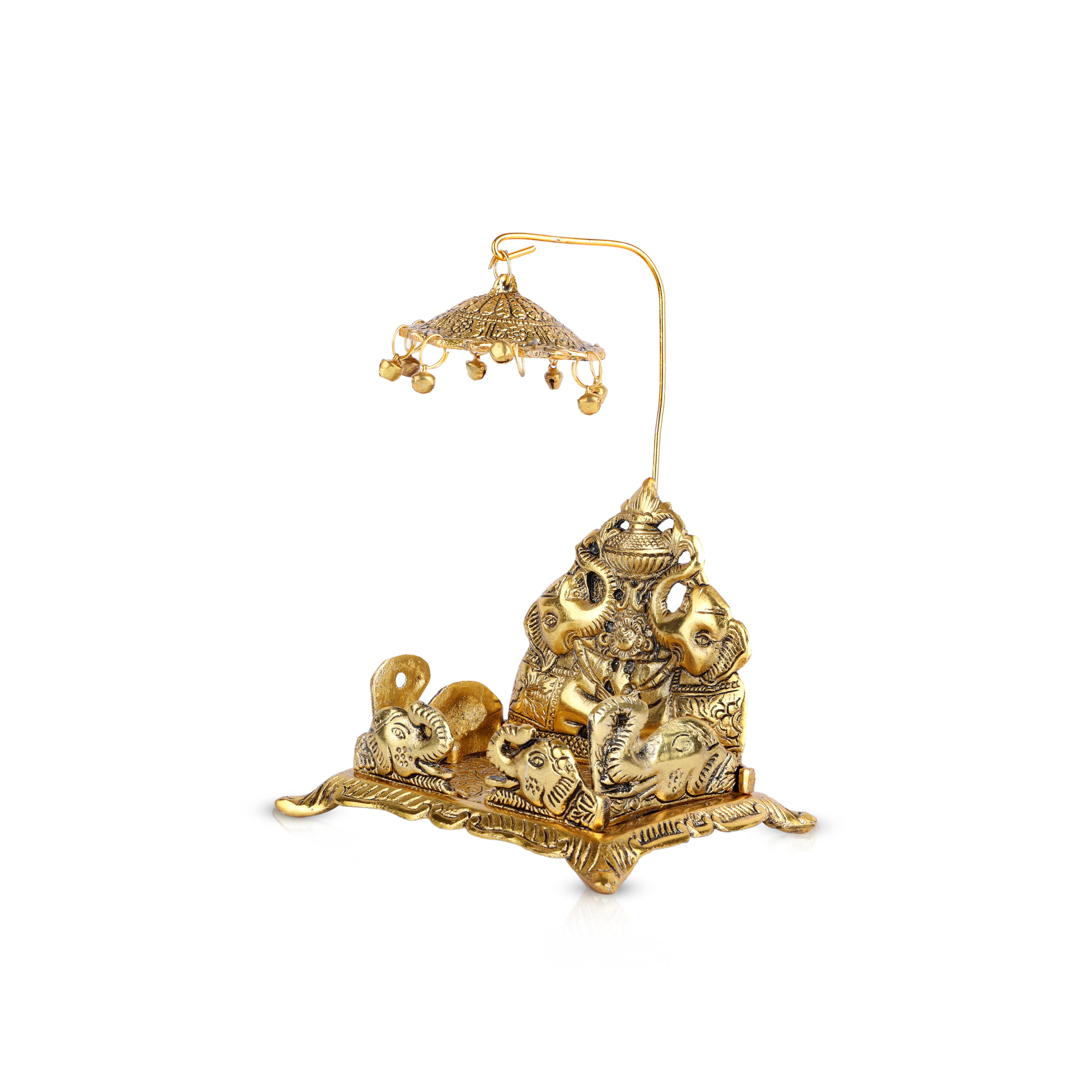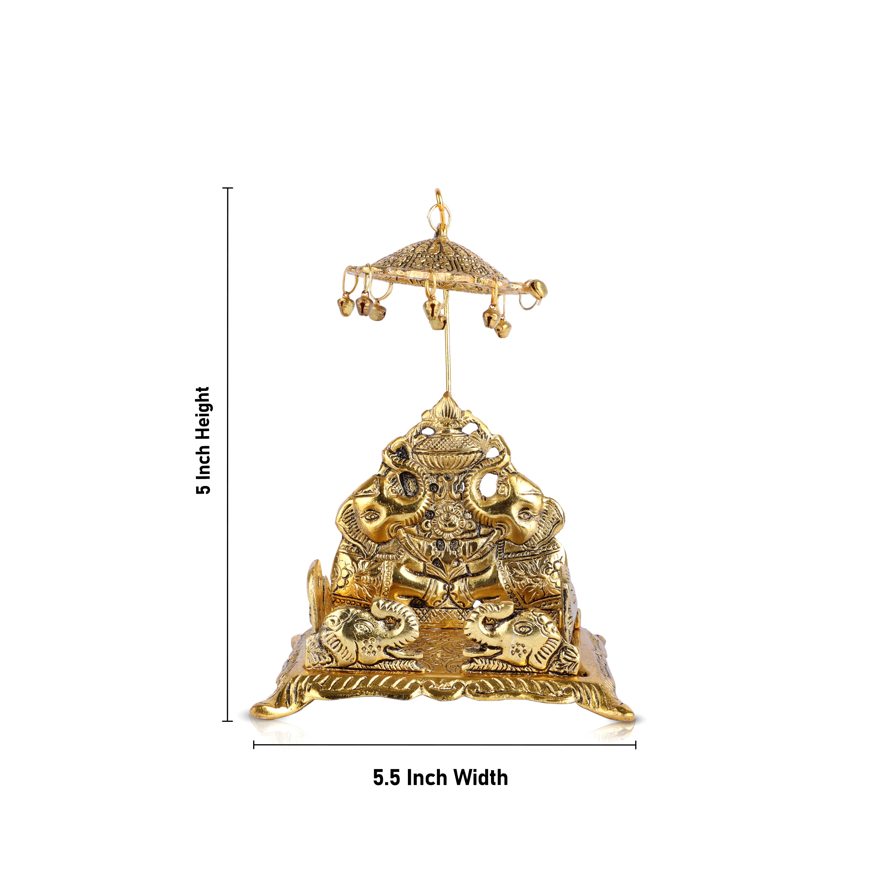 Simhasan - 5 x 5.5 Inches | Metal Aasan/ Gold Polish Simhasanam for Deity