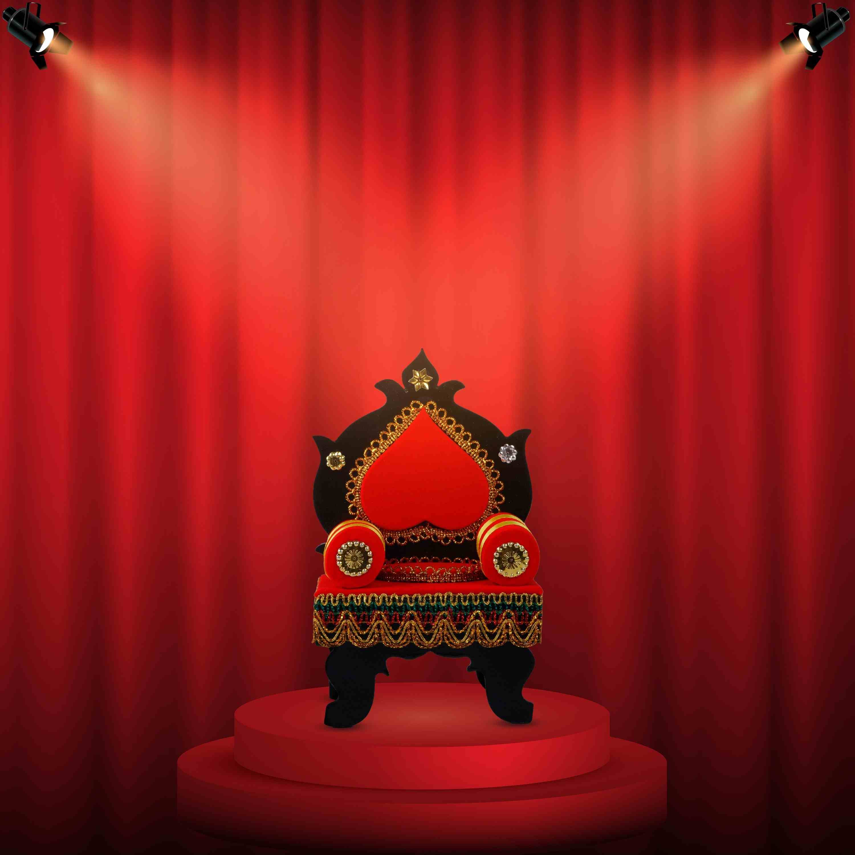 Simhasanam - 8 x 4.5 Inches | Wooden Simhasan/ Velvet Singhasan for Deity