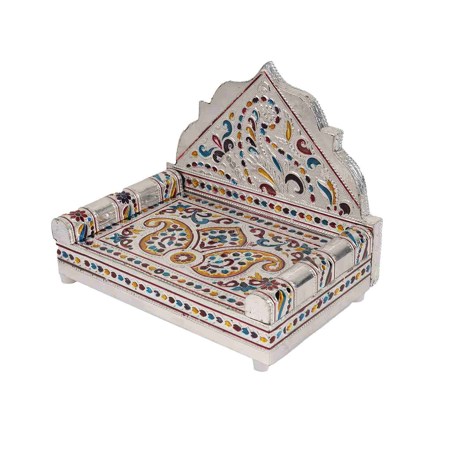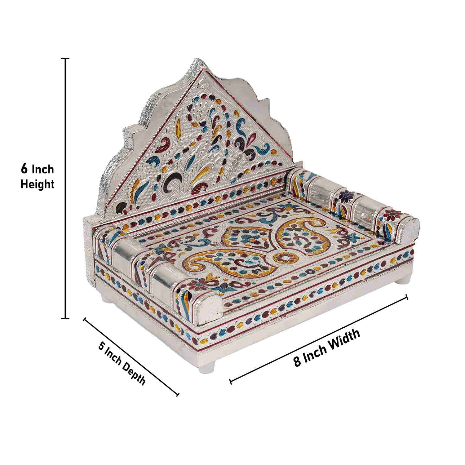 Sinhasan - 8 x 5 Inches | Silver & Gold Finish Aasan/ Meenakari Chowki/ Bajot for Deity