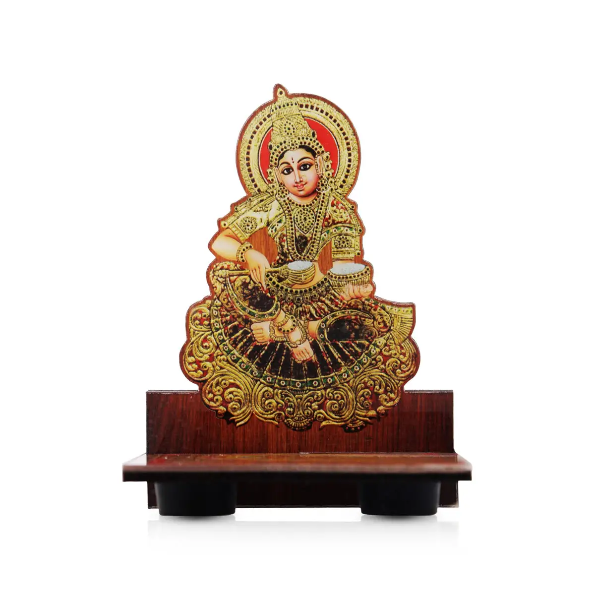 Home / Products / Pooja Aasan & Bajot & Pooja Mat / Sri Chakra Design Manai Palagai With Annapoorani Photo Frame - 4 x 3 Inches | Bajot With Picture Frame for Pooja/ 50 Gms