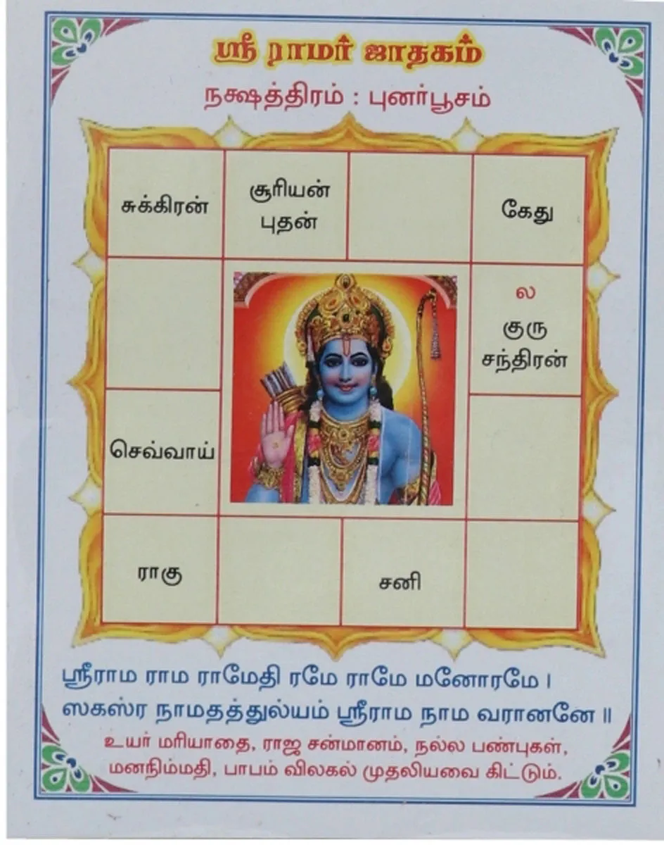 Sri Ramar Jathagam | Ramar Jathagam in Tamil/ Rama Horoscope with Pouch