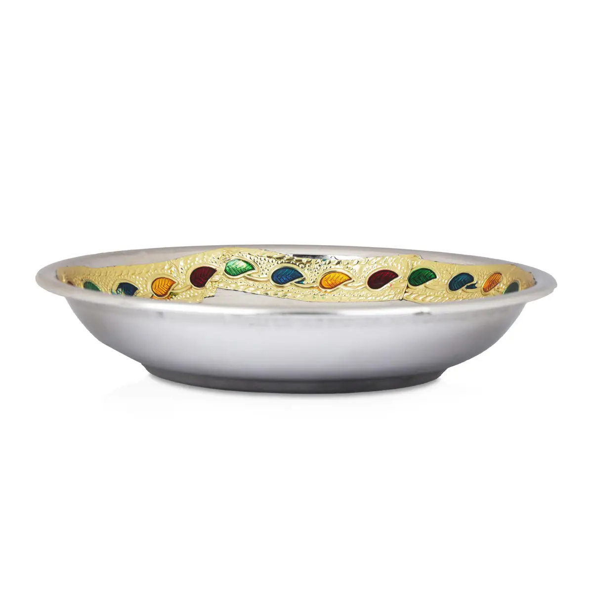 Home / Products / Pooja Plate & Tray / Stainless Steel Plate - 5 Inches | Thali Plate/ Meenakari Pooja Plate for Home/ 80 Gms Approx