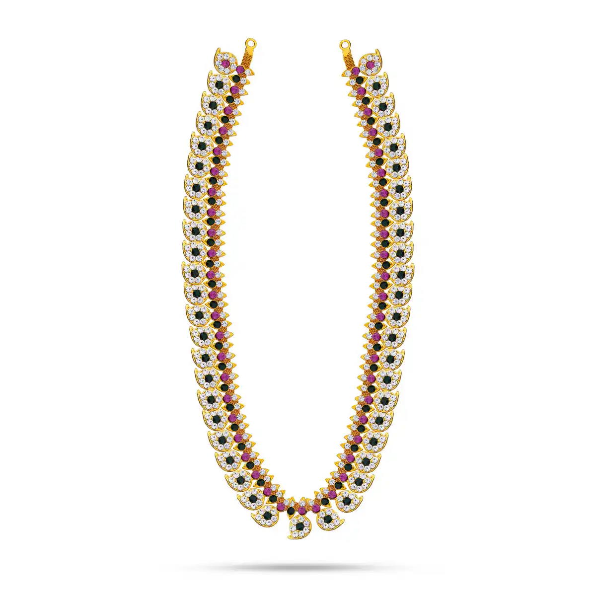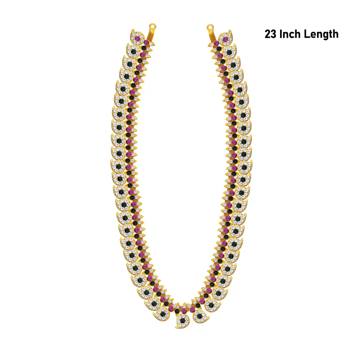 Stone Haram - 23 Inches | Multicolour Stone Jewellery/ 82 Bits/ Mango Design Artificial Jewelry For Deity