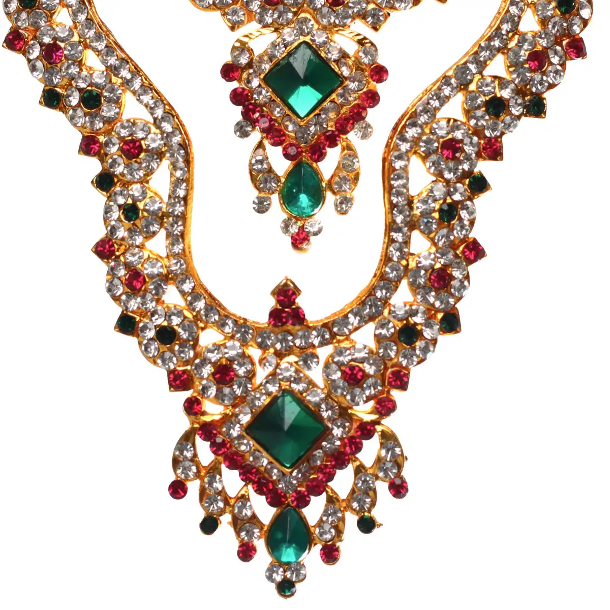 Home / Products / Neck & Body Accessories / Stone Haram And Necklace - 5 x 3.5 Inches | Multicolour Stone Jewelry/ 2 Line Stone Jewellery for Deity