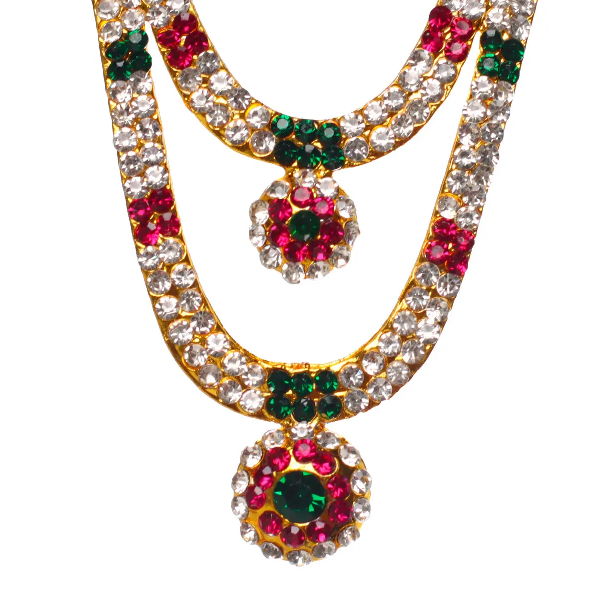 Home / Products / Neck & Body Accessories / Stone Haram & Stone Necklace - 3 x 1.75 Inches | 2 Line Artificial Jewellery/Multicolour Stone Jewelry for Deity