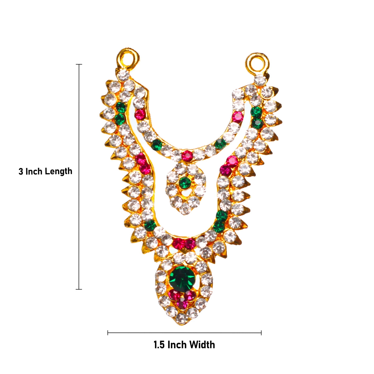 Stone Necklace - 3 x 1.5 Inches | 2 Line Necklace/ Multicolour Stone Jewelry/ Jewellery for Deity