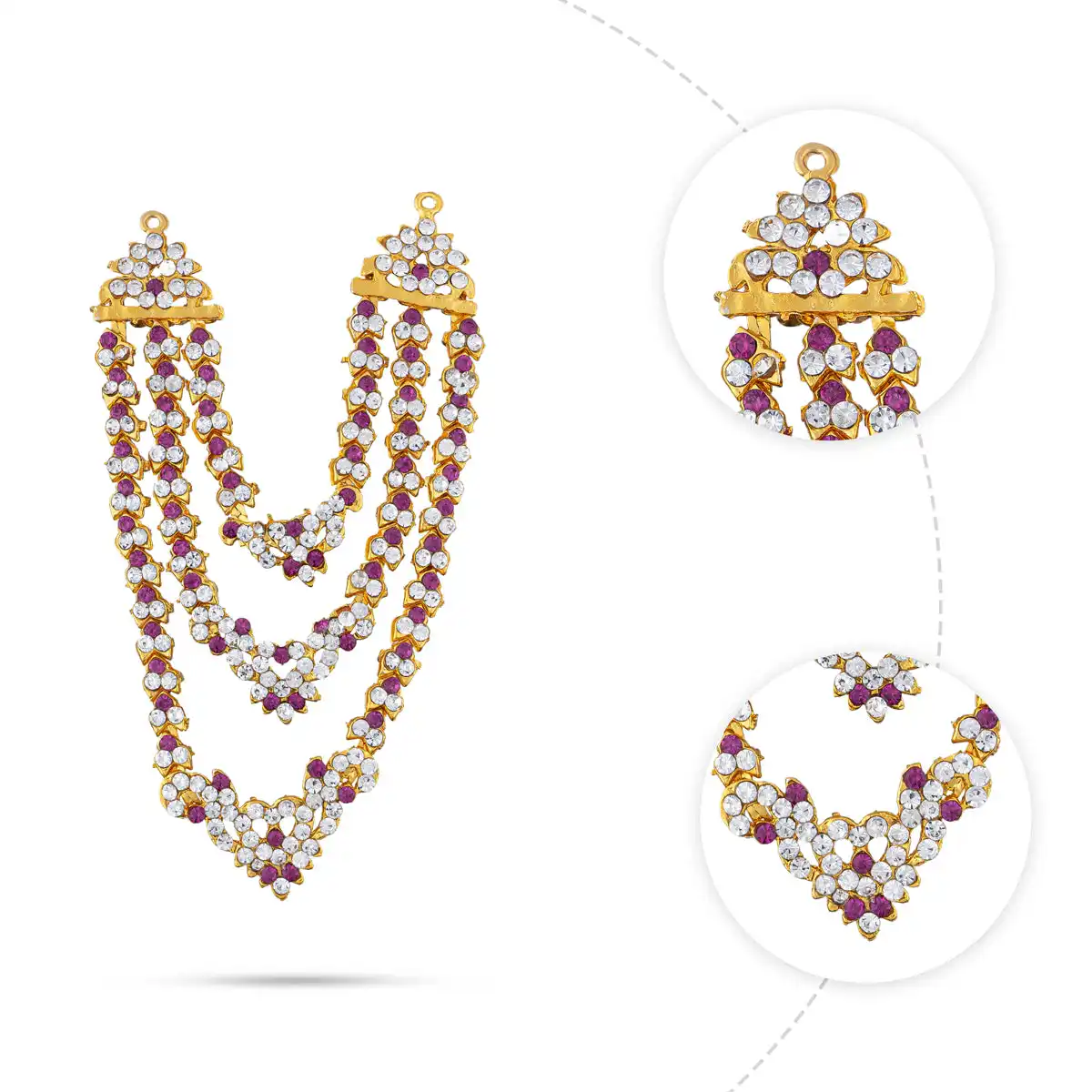 Stone Necklace - 4.5 Inches | 3 Line Stone Haram/ Artificial Jewelry/ Stone Jewellery For Deity Décor