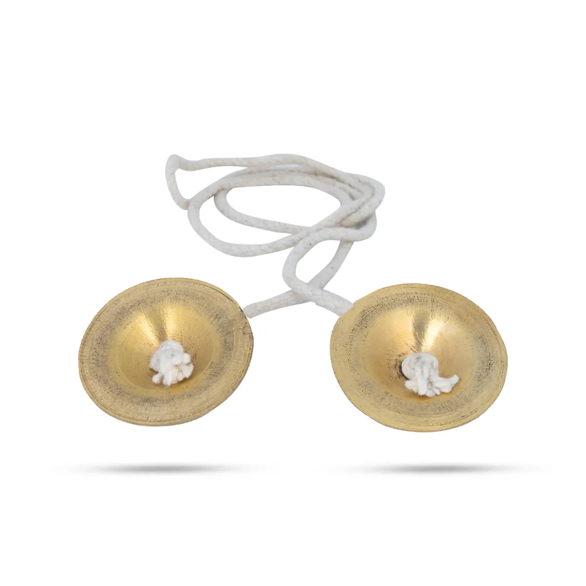 Talam With Rope - 2.25 Inches Dia | Hand Cymbals/ Brass Jalra/ Tallam/ Manjira Taal for Bhajan